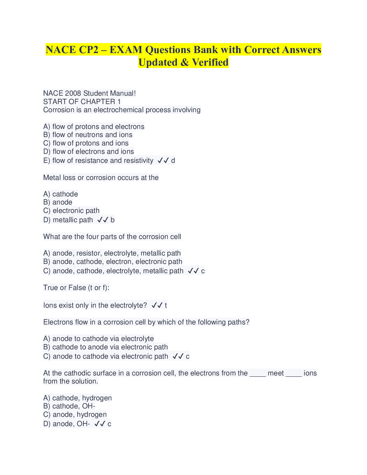 Physics > QUESTIONS & ANSWERS > NACE CP2 – EXAM Questions Bank with Correct Answers Updated & Verified (All)