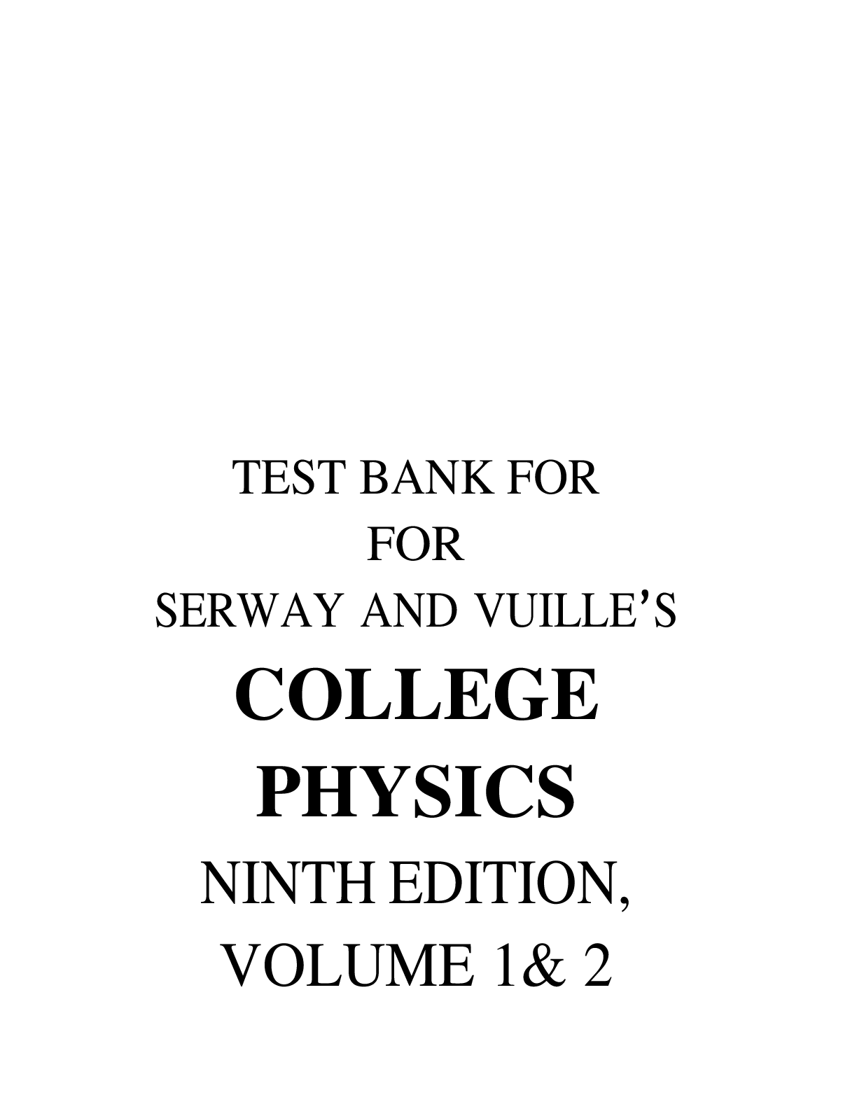 Physics > TEST BANKS > TEST BANK FOR FOR SERWAY AND VUILLE’S COLLEGE PHYSICS NINTH EDITION, VOLUME 1& 2 (All)