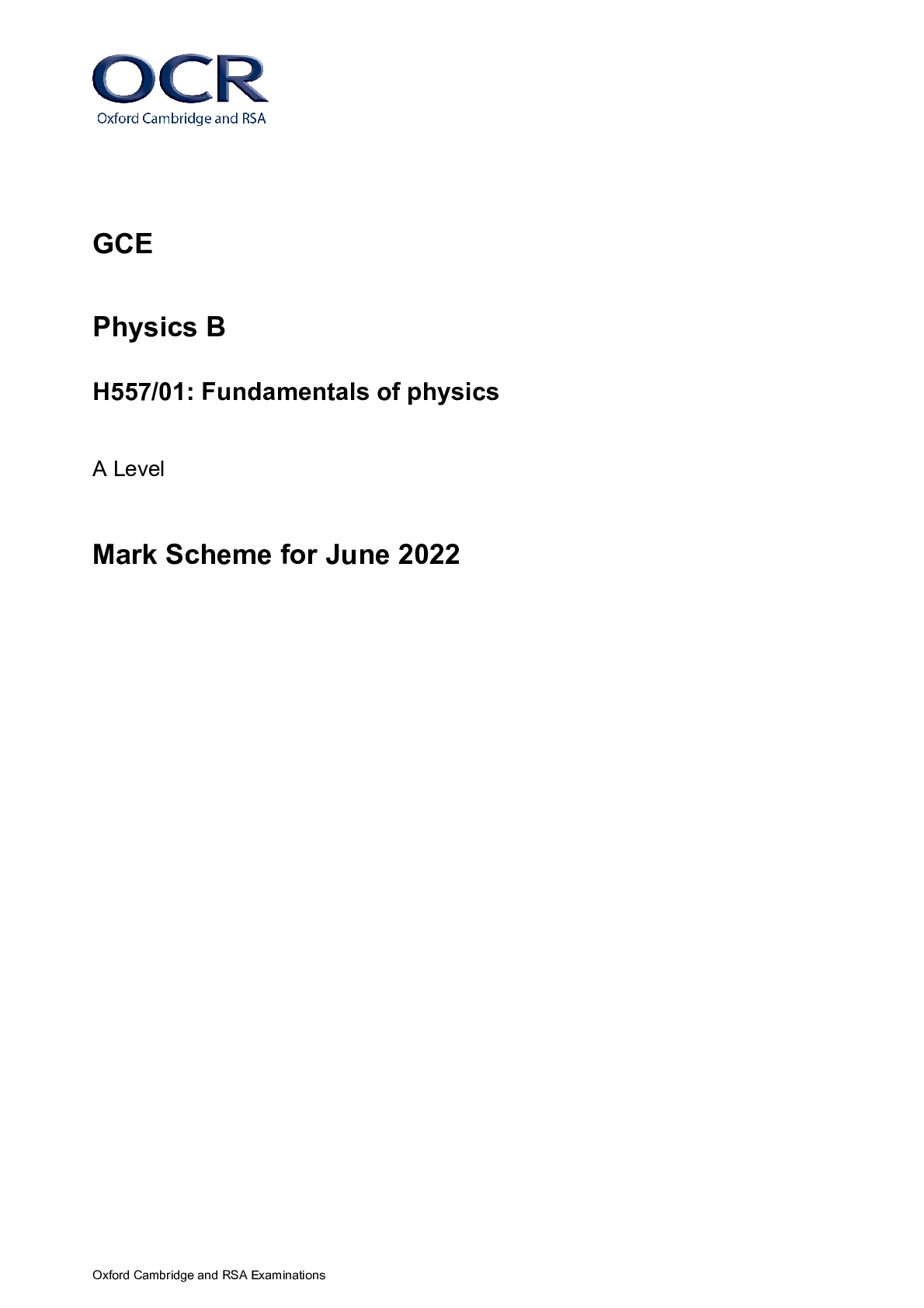 Physics > A-Level Mark Scheme > OCR A LEVEL 2022 PHYSICS B PAPER 1 FUNDAMENTALS OF PHYSICS MARK SCHEME (All)