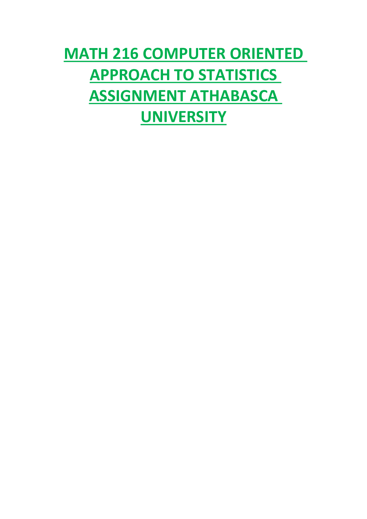 Statistics > EXAM > MATH 216 COMPUTER ORIENTED APPROACH TO STATISTICS ASSIGNMENT ATHABASCA UNIVERSITY (All)