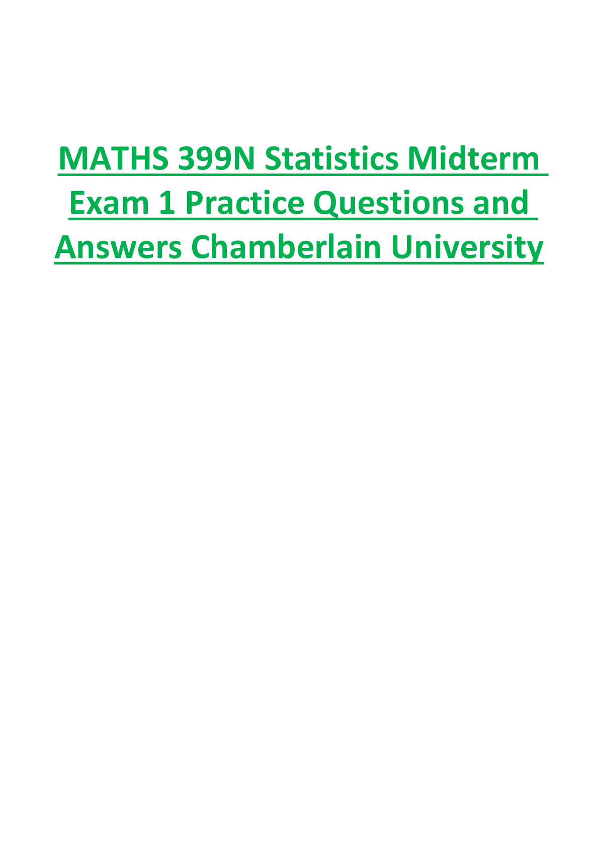 Statistics > EXAM > MATHS 399N Statistics Midterm Exam 1 Practice Questions and Answers Chamberlain University (All)