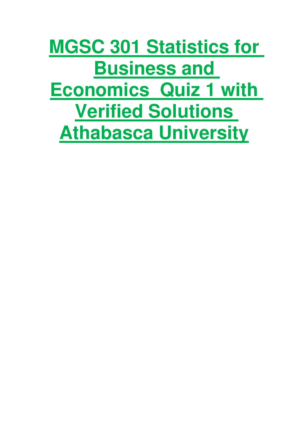 Statistics > EXAM > MGSC 301 Statistics for Business and Economics Quiz 1 with Verified Solutions Athabasca University (All)