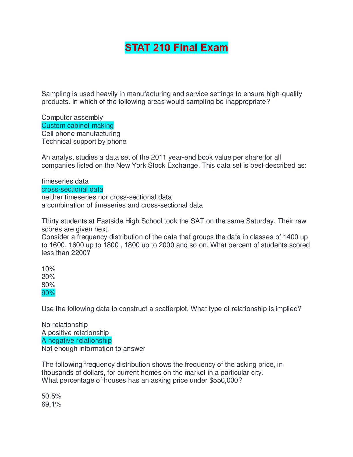 Statistics > EXAM > STAT 210 Final Exam | Complete Solutions (Verified) (All)