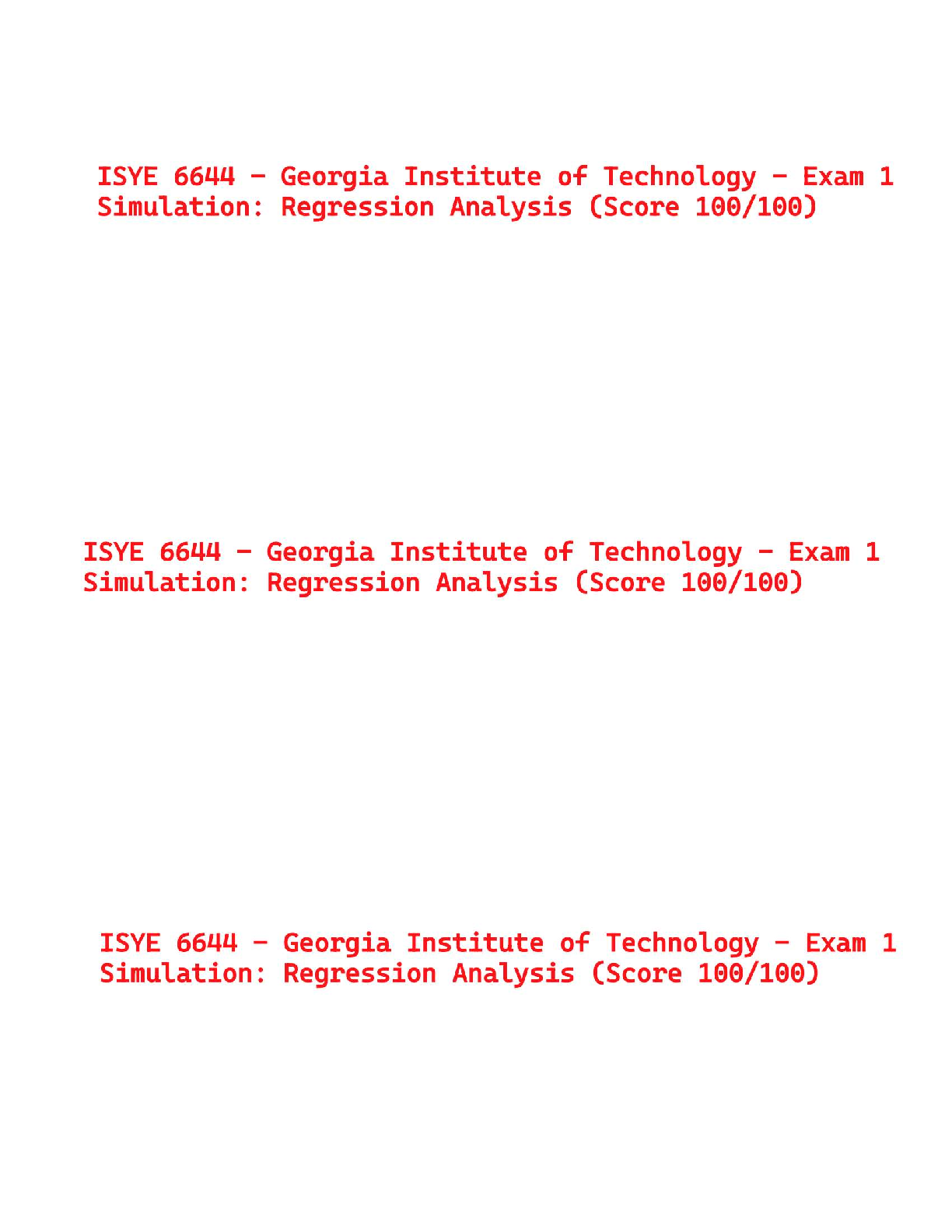 Statistics > EXAM > ISYE 6644 - Georgia Institute of Technology - Exam 1 Simulation: Regression Analysis (Score 100/100) (All)