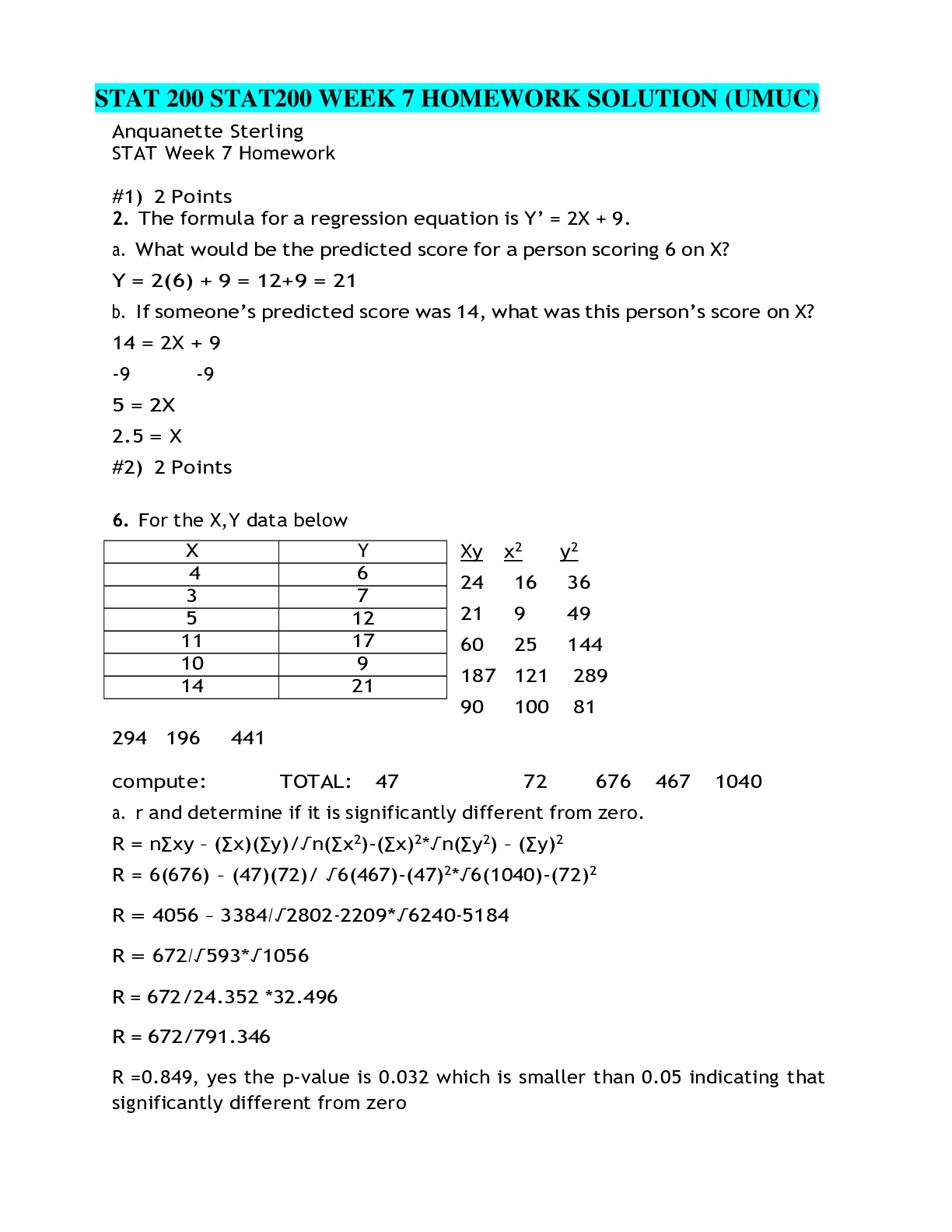 Statistics > EXAM > STAT 200; Week 7 Homework Problems, Already Graded A (All)