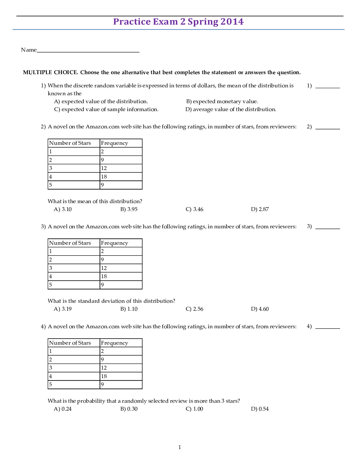 Statistics > QUESTIONS & ANSWERS > STAT101 - Statistics Exam latest update (All)