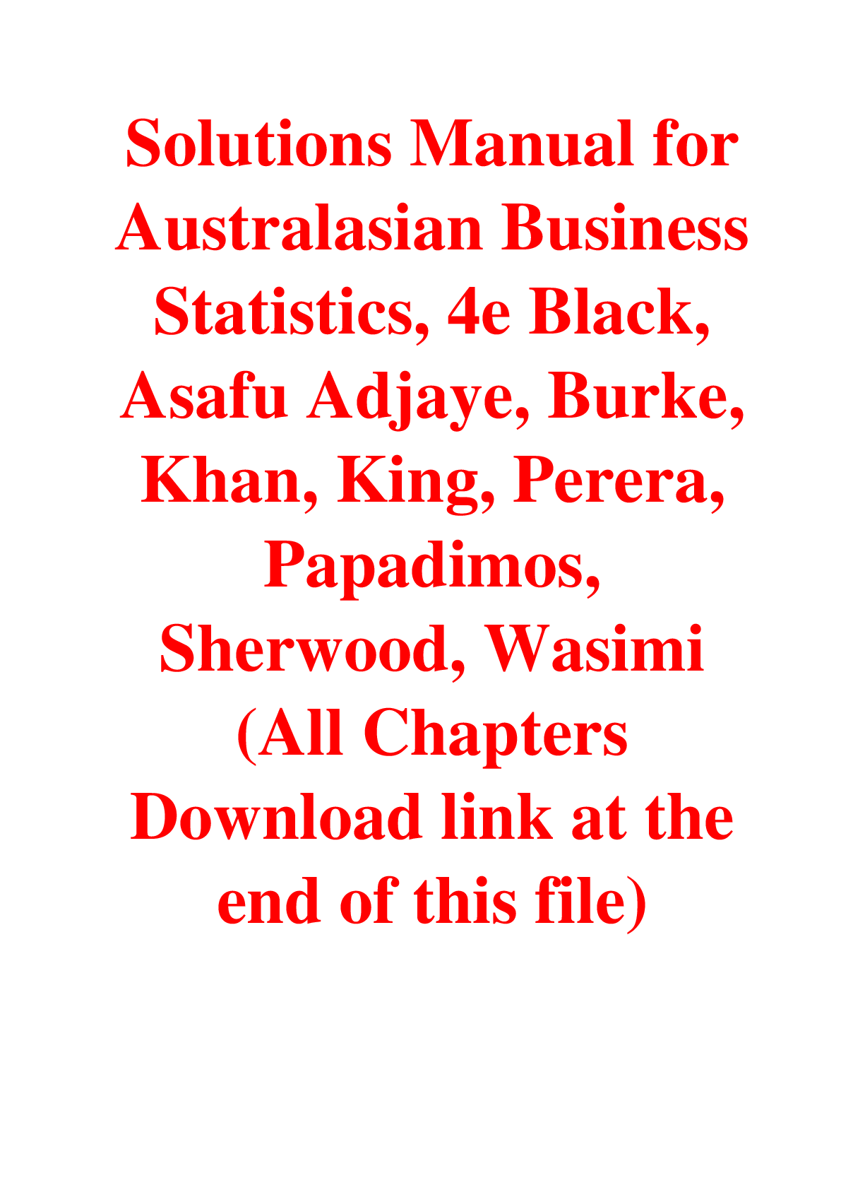 Statistics > SOLUTIONS MANUAL > Solutions Manual for Australasian Business Statistics, 4e Black, Asafu Adjaye, Burke, Khan, King, Perera, Papadimos, Sherwood, Wasimi (All)
