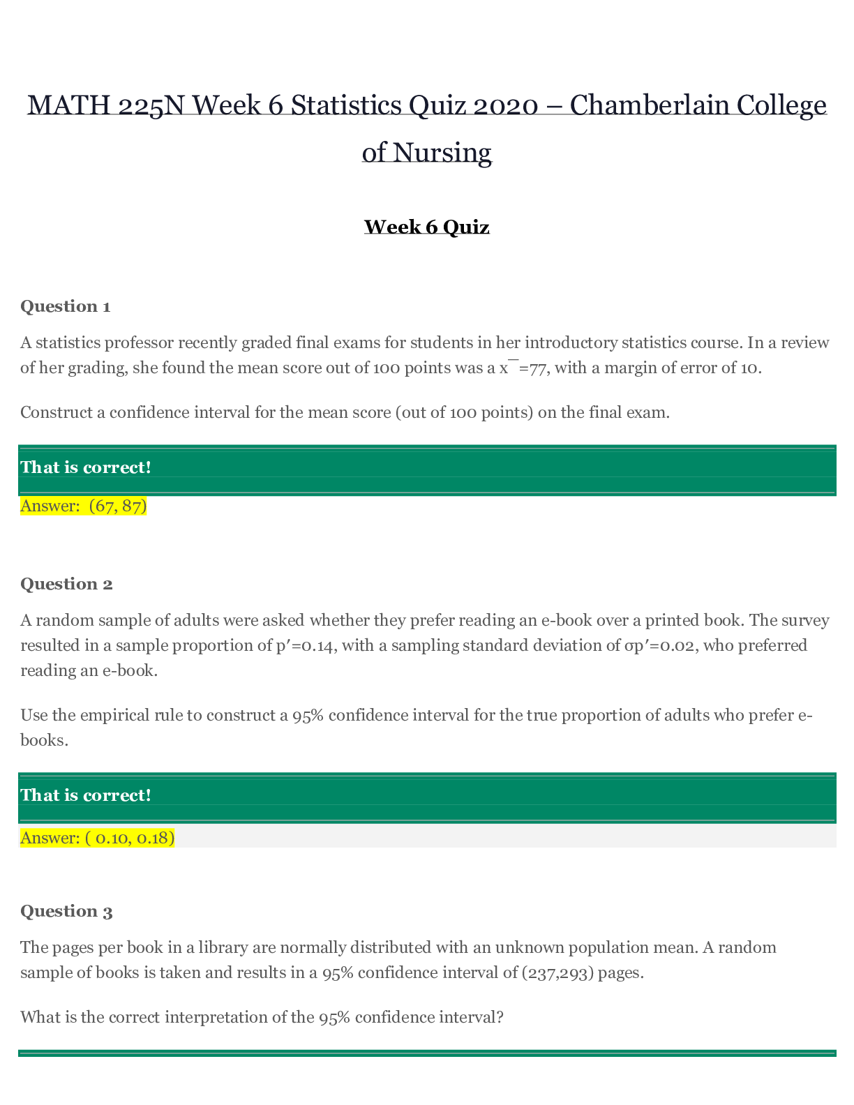 Statistics > EXAMs > MATH 225N Week 6 Statistics Quiz 2020 | MATH225N Week 6 Statistics Quiz_Graded A (All)