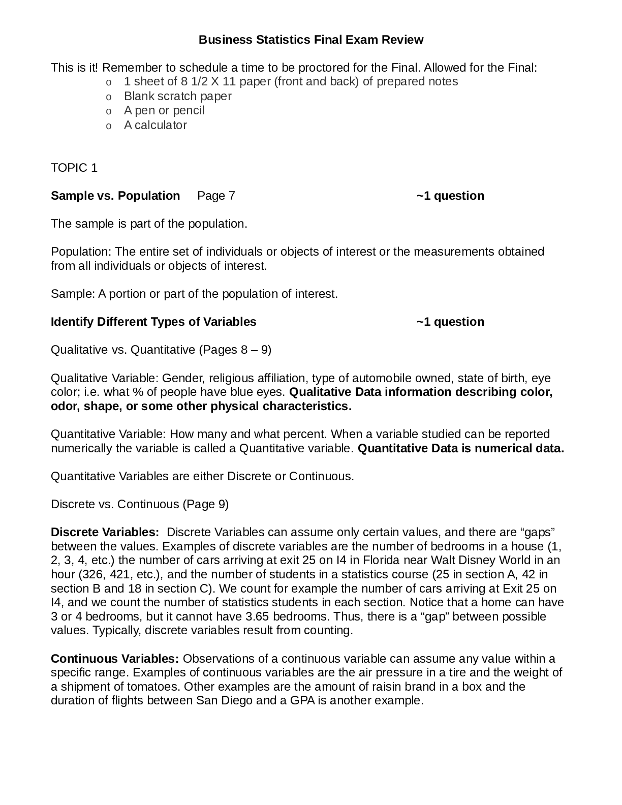 Statistics > EXAMs > Business Statistics Final Exam Review (All)