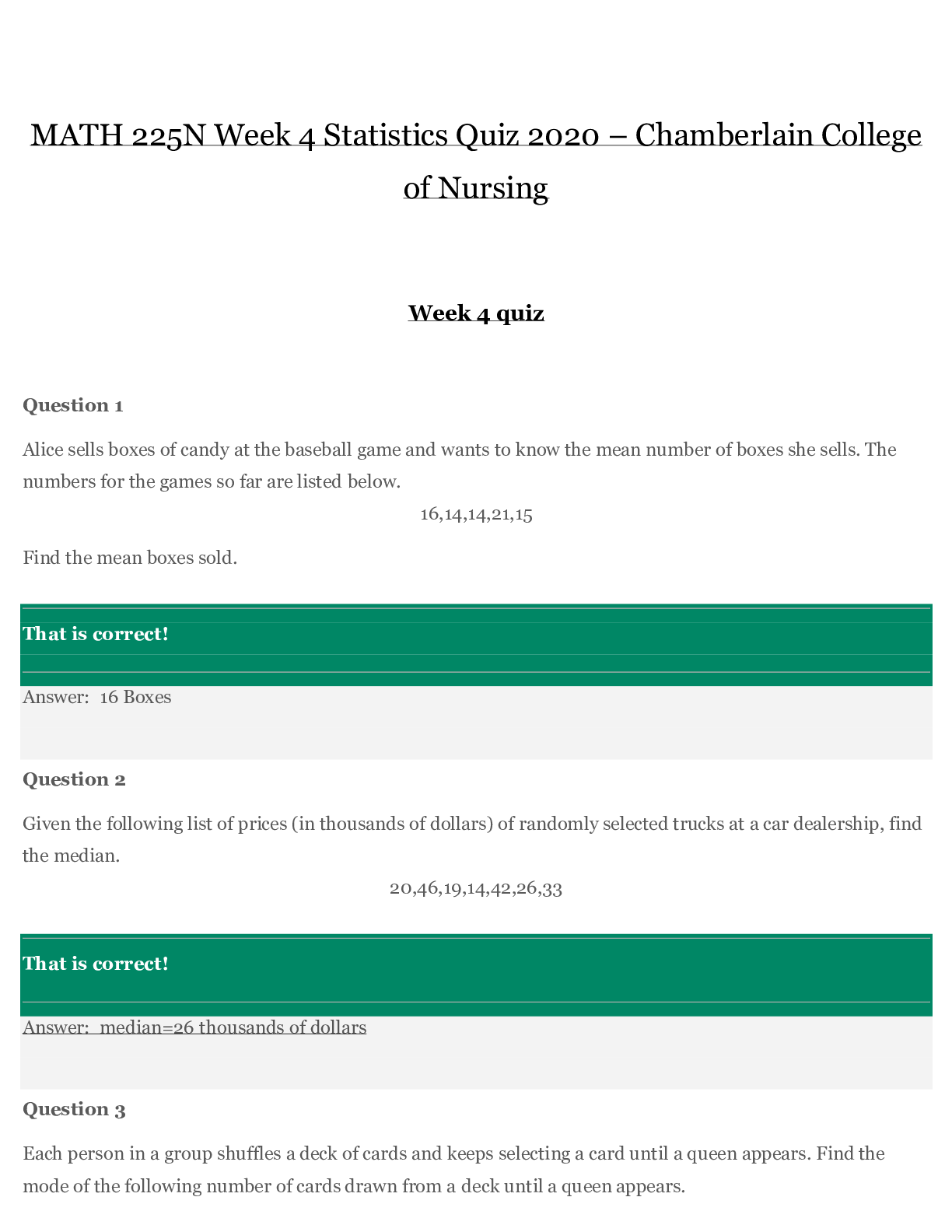 Statistics > QUESTIONS & ANSWERS > MATH 225N Week 6 Statistics Quiz Solutions _ Chamberlain College of Nursing. Q and A solution (All)