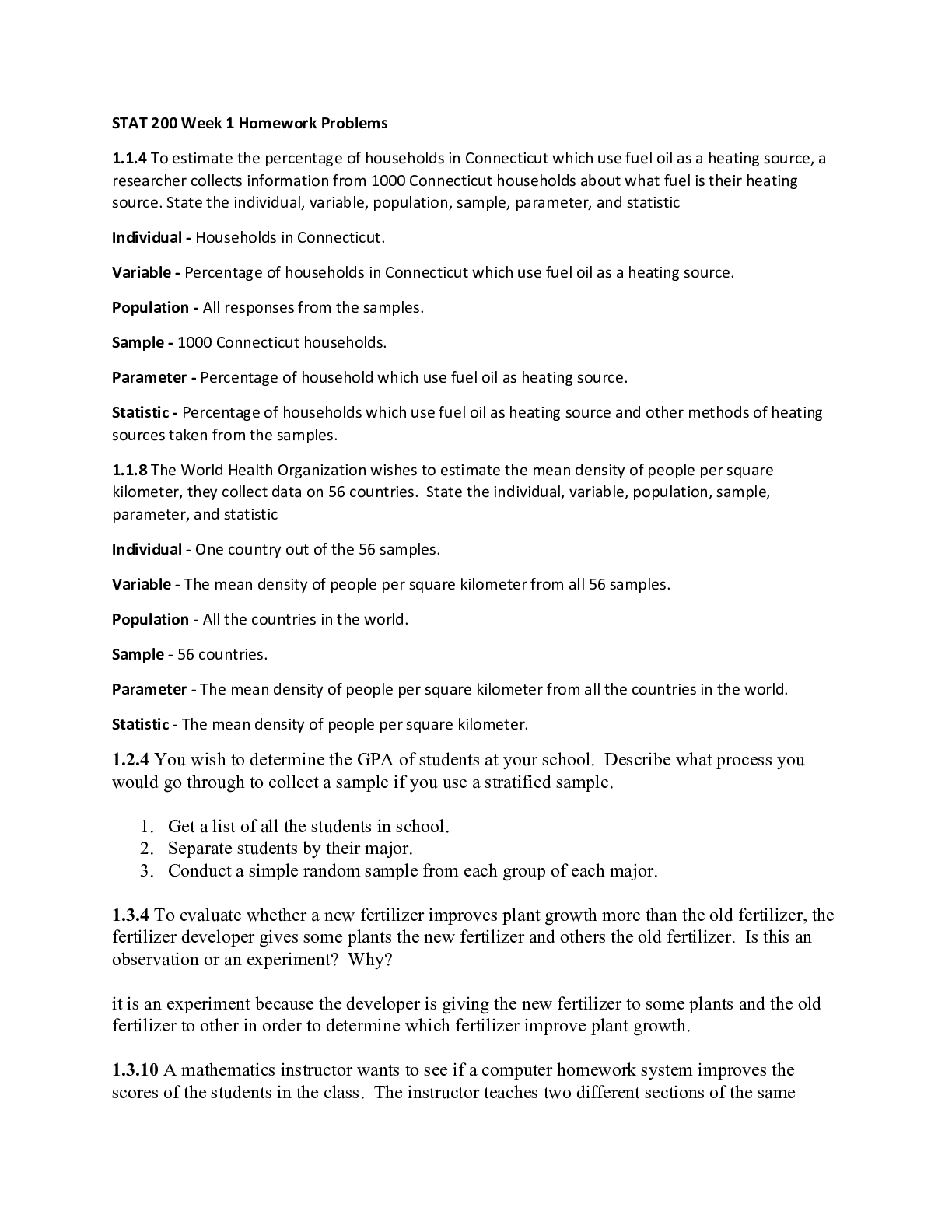 Statistics > EXAMs > STAT 200 Week 1 Homework Problems {All Solved Solution} 100% Correct (All)