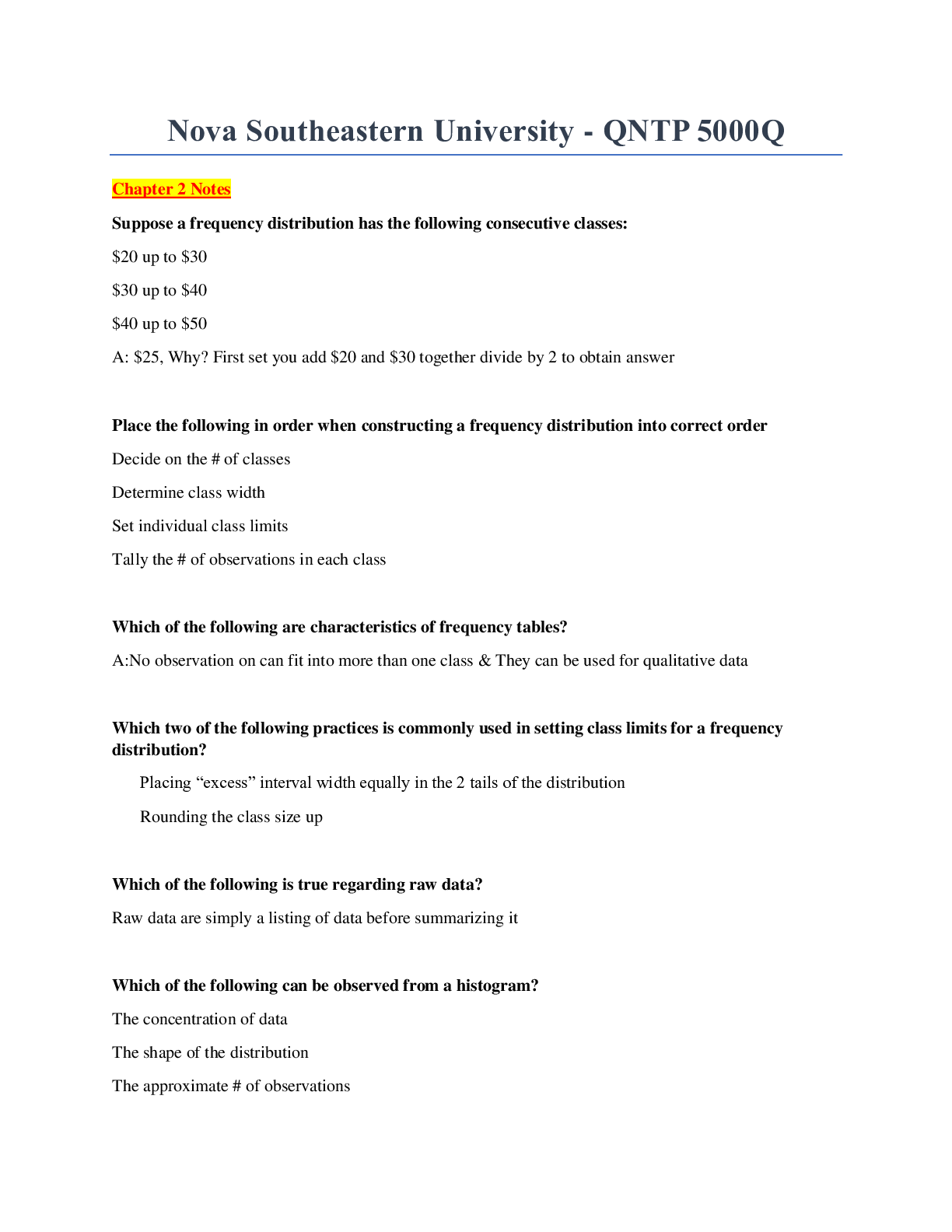 Statistics > QUESTIONS & ANSWERS > Nova Southeastern University - QNTP 5000. Questions and Answers (All)