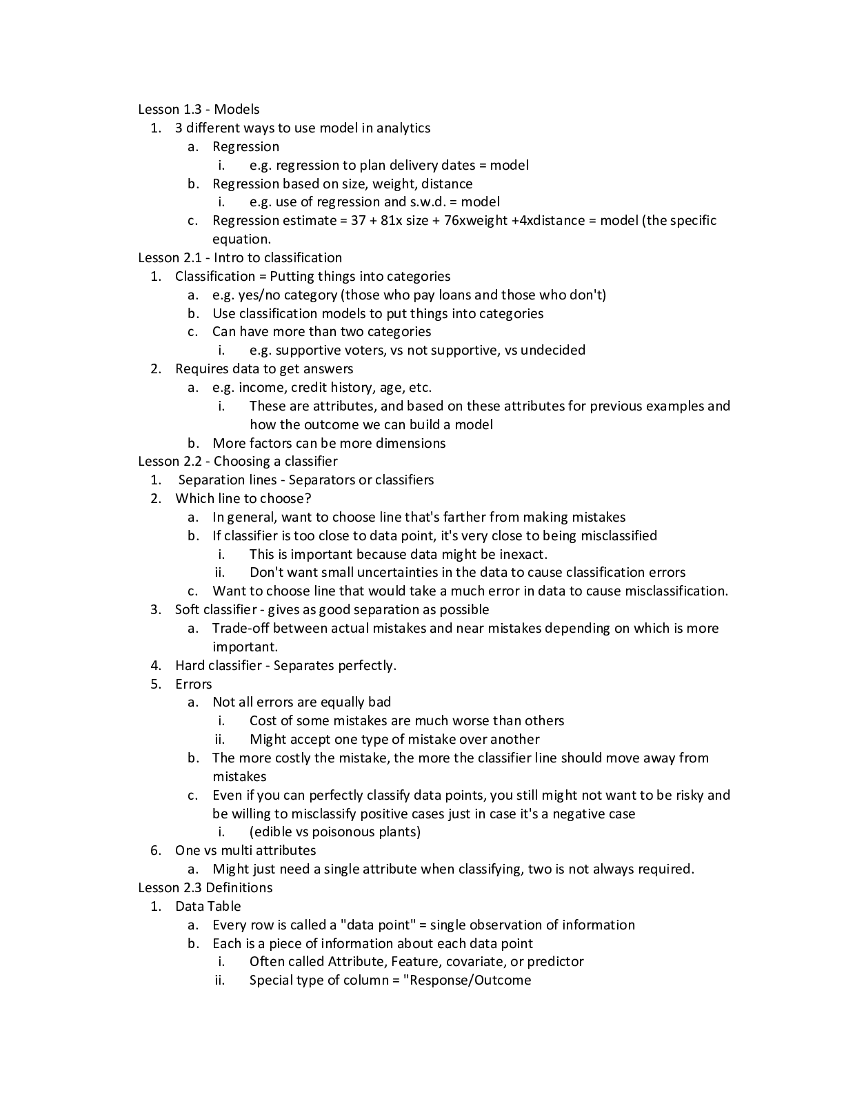 Statistics > QUESTIONS & ANSWERS > Georgia Institute Of Technology - ISYE 6501Notes_Quiz1. (All)