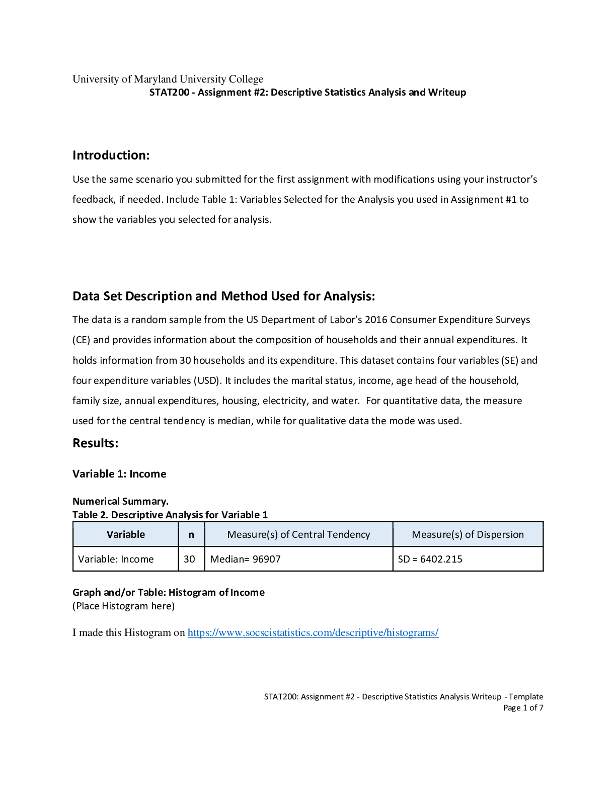 Statistics > EXAM > University Of Maryland - University College > STAT200 - Assignment #2: Descriptive Statistics Analysis and Writeup 2021 updated. (All)