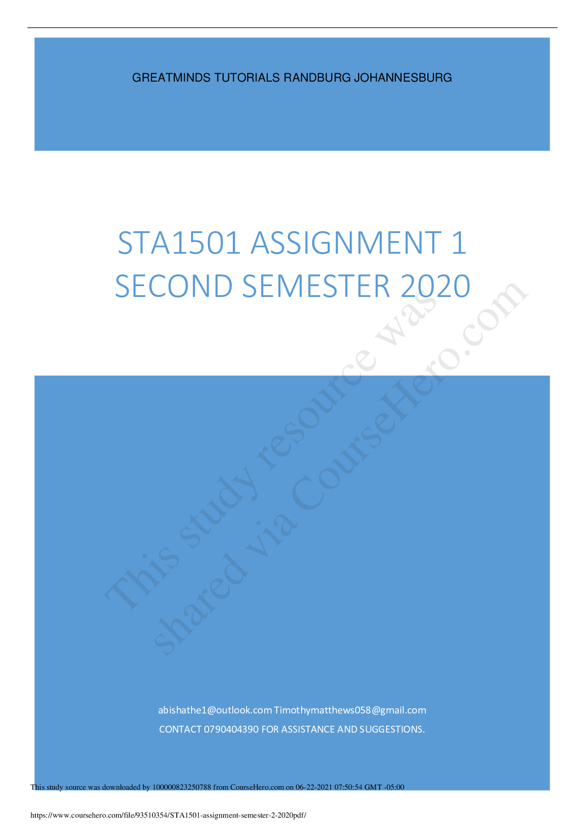 Statistics > QUESTIONS & ANSWERS > STA1501 ASSIGNMENT 1 SECOND SEMESTER 2020 (All)