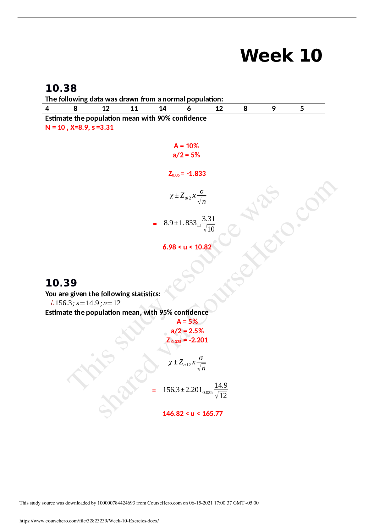 Statistics > QUESTIONS & ANSWERS > BDA 1305AFEWeek_10_Exercies CORRECT ANSWERS HIGHLIGHTED IN RED.DOWNLOAD TO SCORE AN A (All)