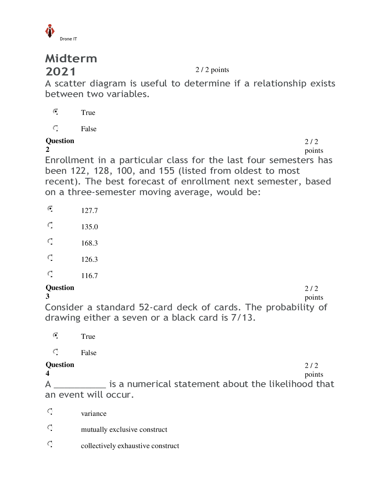 Statistics > EXAM > APPLIED DECISION METHODS GBA 334-Midterm-Saint Leo University-2021 (All)
