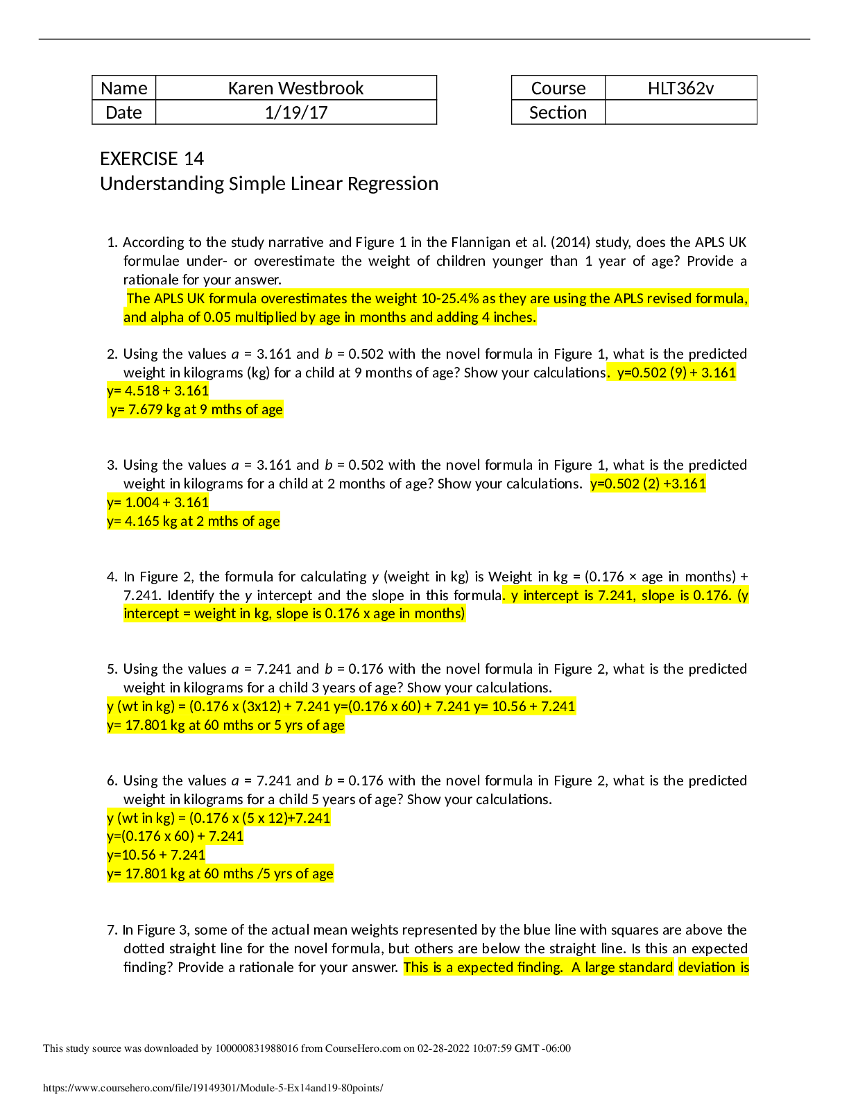 Statistics > QUESTIONS & ANSWERS > Grand Canyon University - HLT 362V HLTV Exercise 14 & 19 (All)