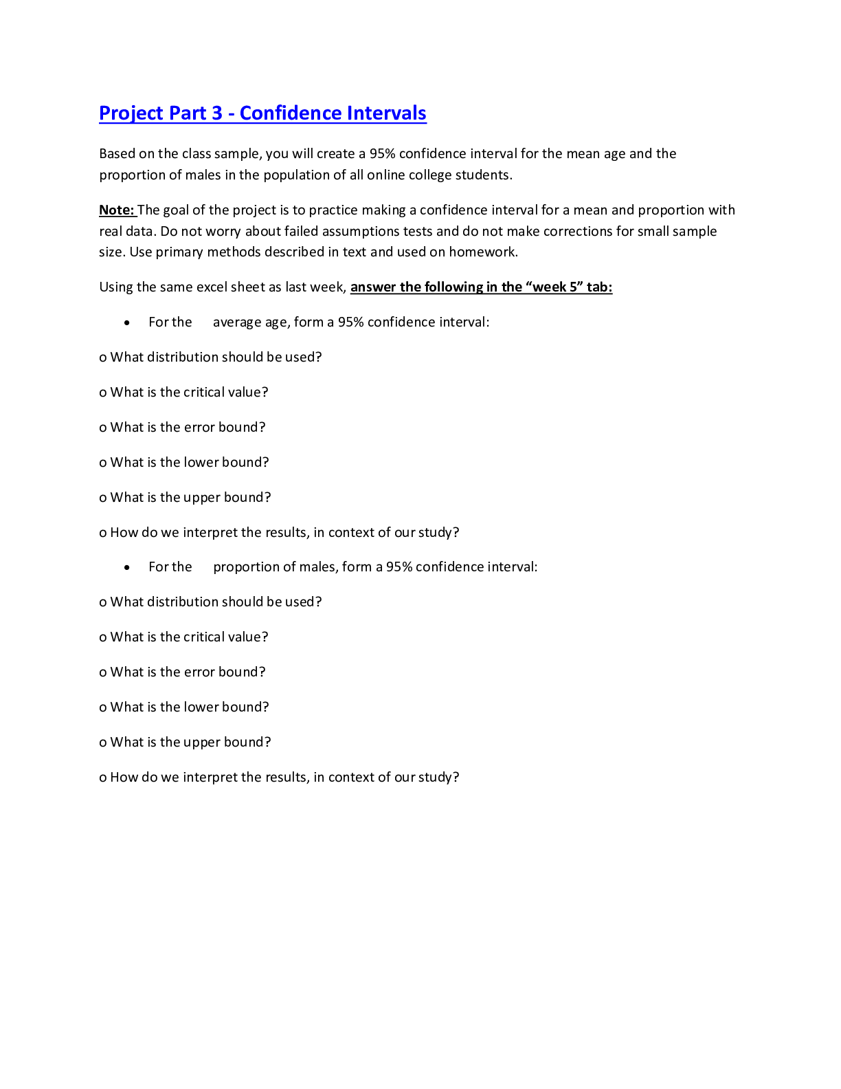 Statistics > QUESTIONS & ANSWERS > BUSI 230 Intro to Probability and Statistics / Project Part 3 - Confidence Intervals (answered) 2021 (All)