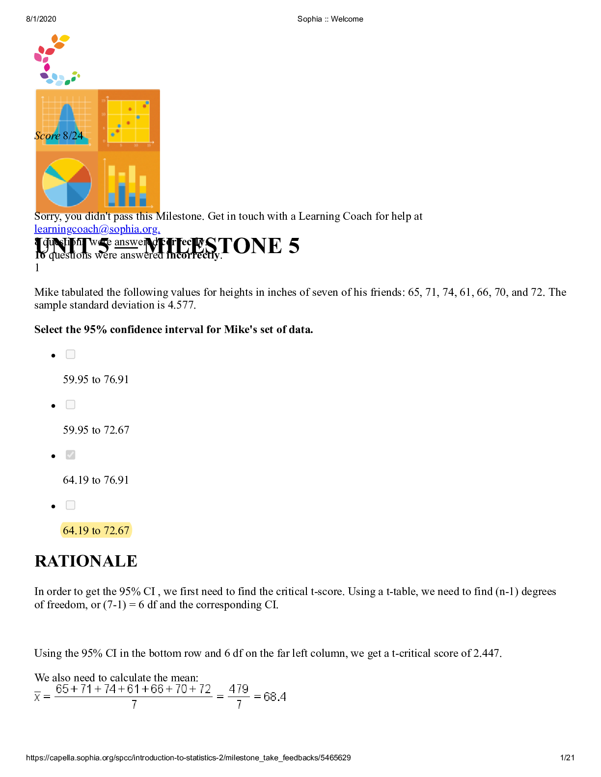 Statistics > QUESTIONS & ANSWERS > Sophia Intro to Stats Unit 5 Milestone 5, Latest Questions and Answers with Explanations, All Correct Study Guide, Download to Score A (All)