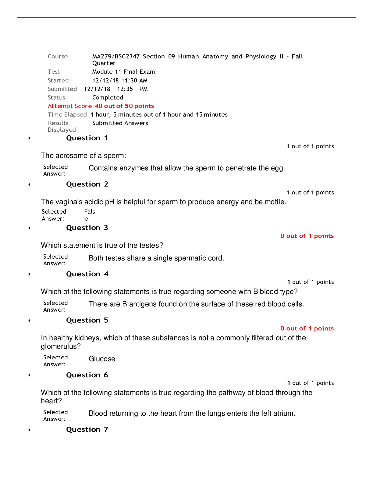 Anatomy > EXAM > BSC 2347 Final Exam / BSC2347 Final Exam: Human Anatomy & Physiology II : Rasmussen College (2020,Already graded A) (All)