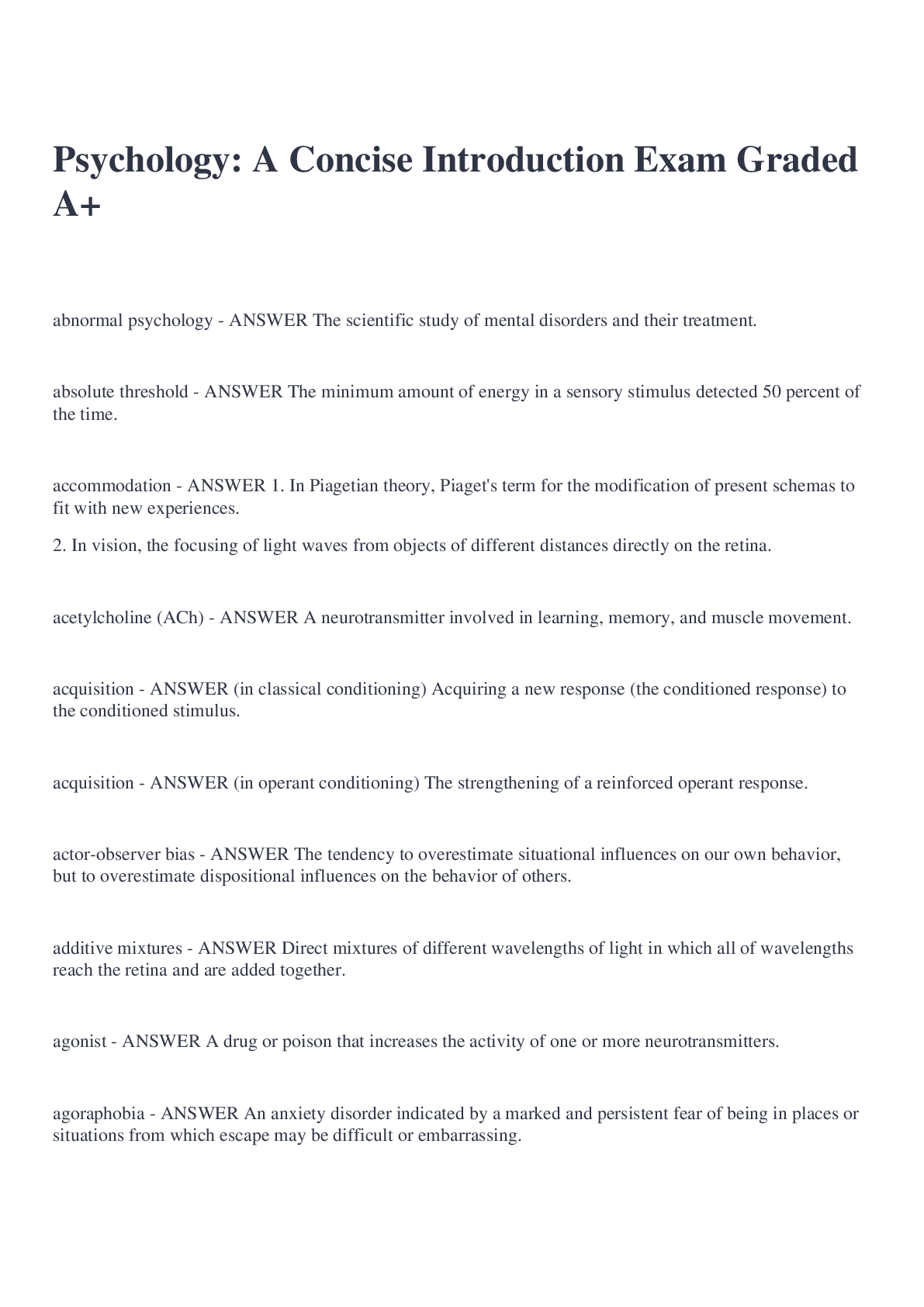 Physiology > EXAM > Psychology: A Concise Introduction Exam Graded A+ (All)