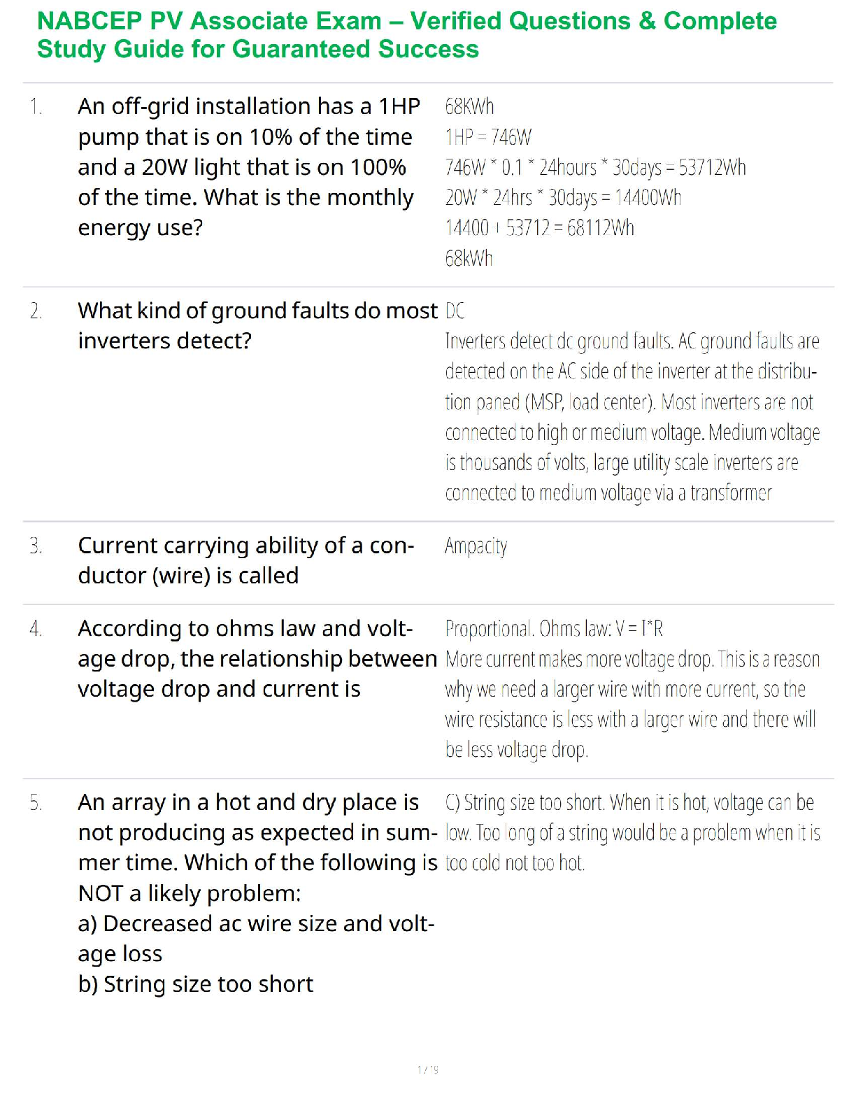 General Science > STUDY GUIDE > NABCEP PV Associate Exam – Verified Questions & Complete Study Guide for Guaranteed Success (All)