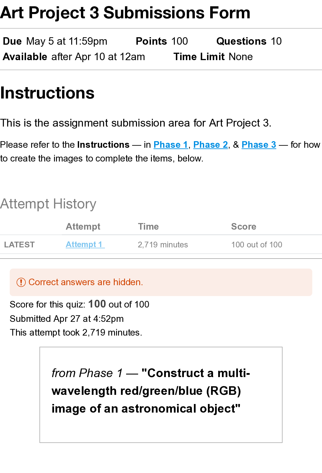 Astronomy > QUESTIONS & ANSWERS > Pennsylvania State UniversityASTRO 7NArt Project 3 Submissions Form REVISED BY EXPERTS 2021 (All)