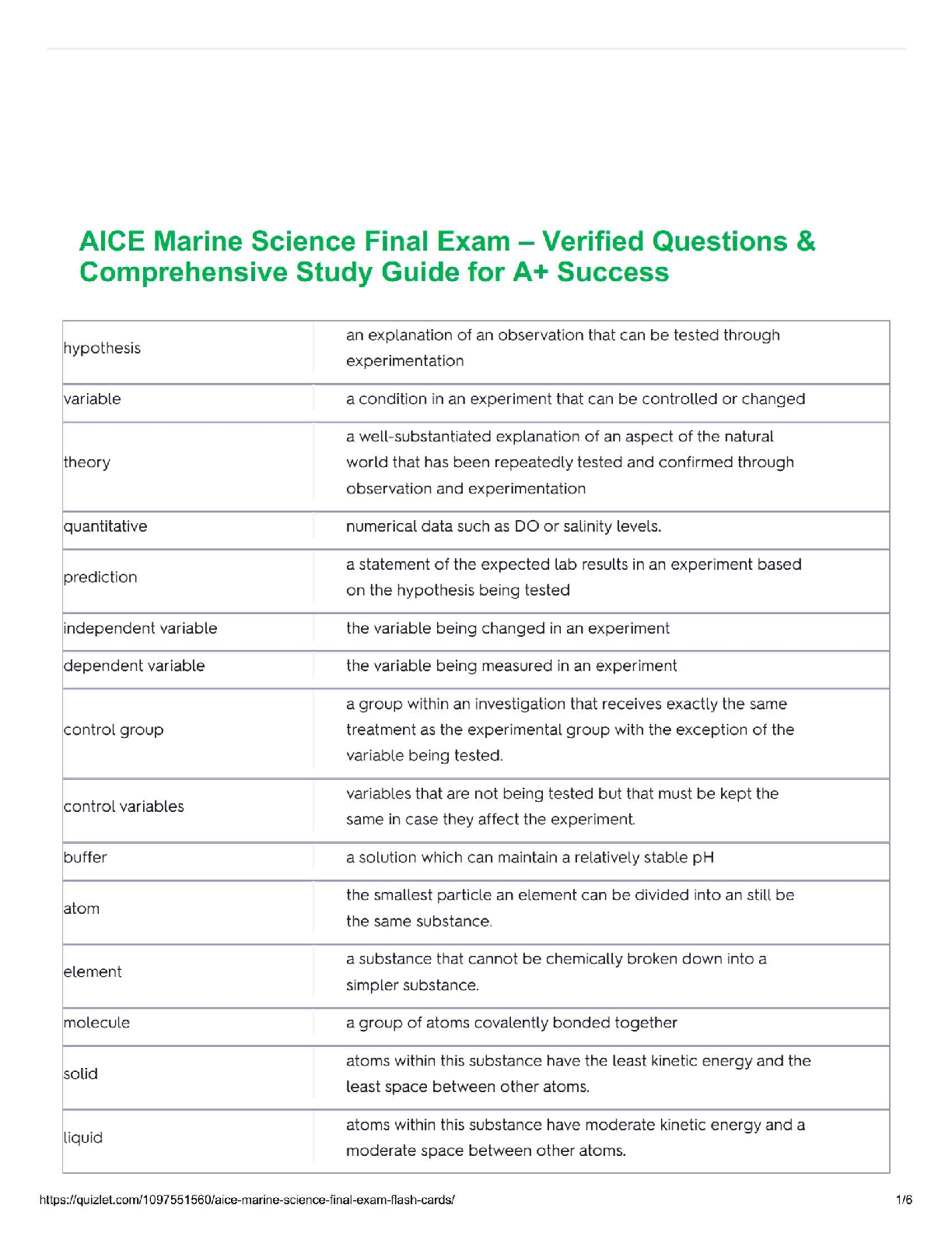 Biology > QUESTIONS & ANSWERS > AICE Marine Science Final Exam – Verified Questions & A+ Guaranteed Success (All)