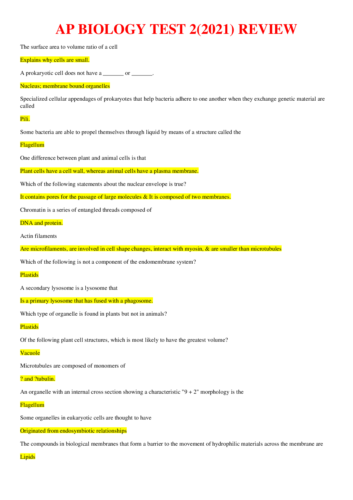 Biology > EXAM REVIEW > AP BIOLOGY TEST 2(2021) REVIEW (All)