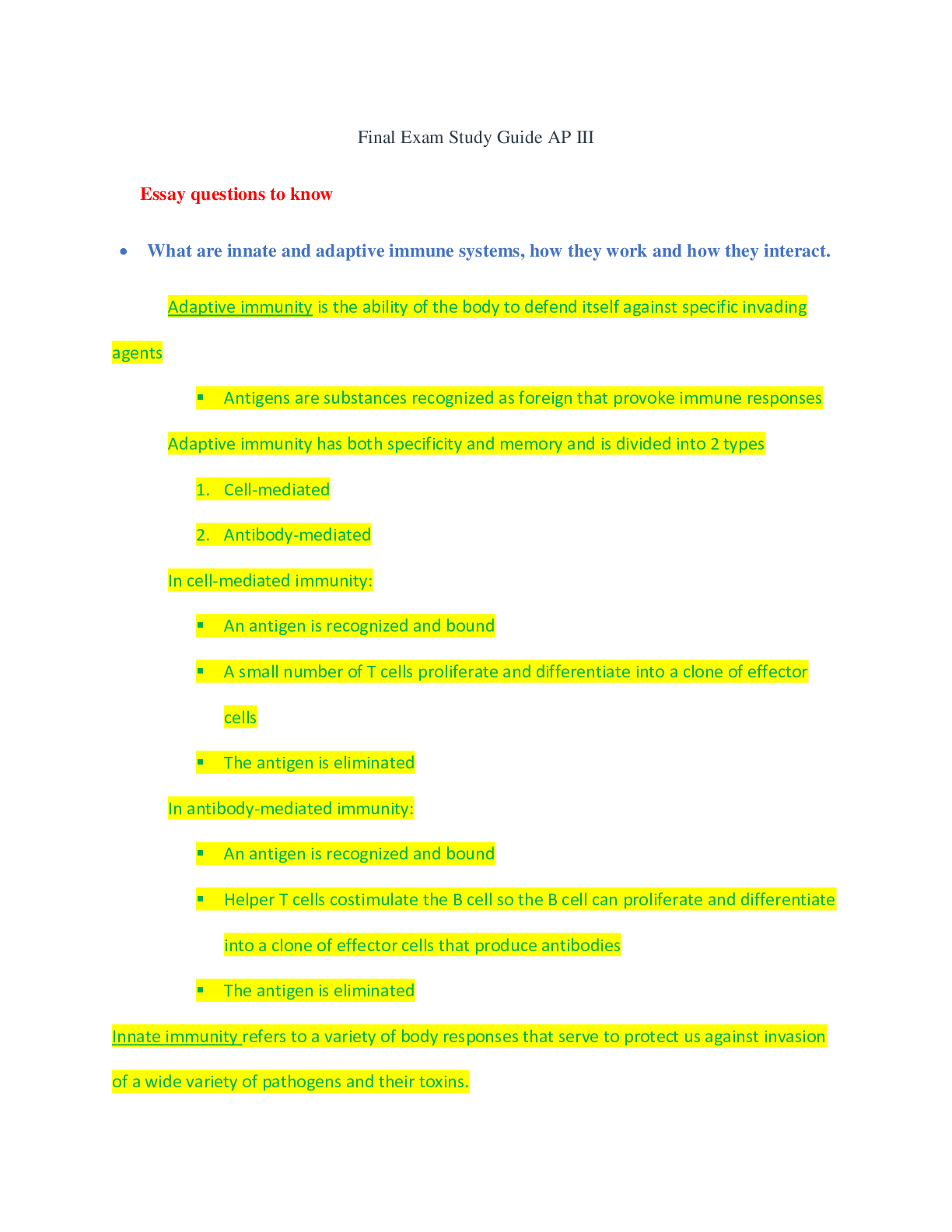 Biology > Solutions Guide > Final BIO - Review for Midterm 1 (All)