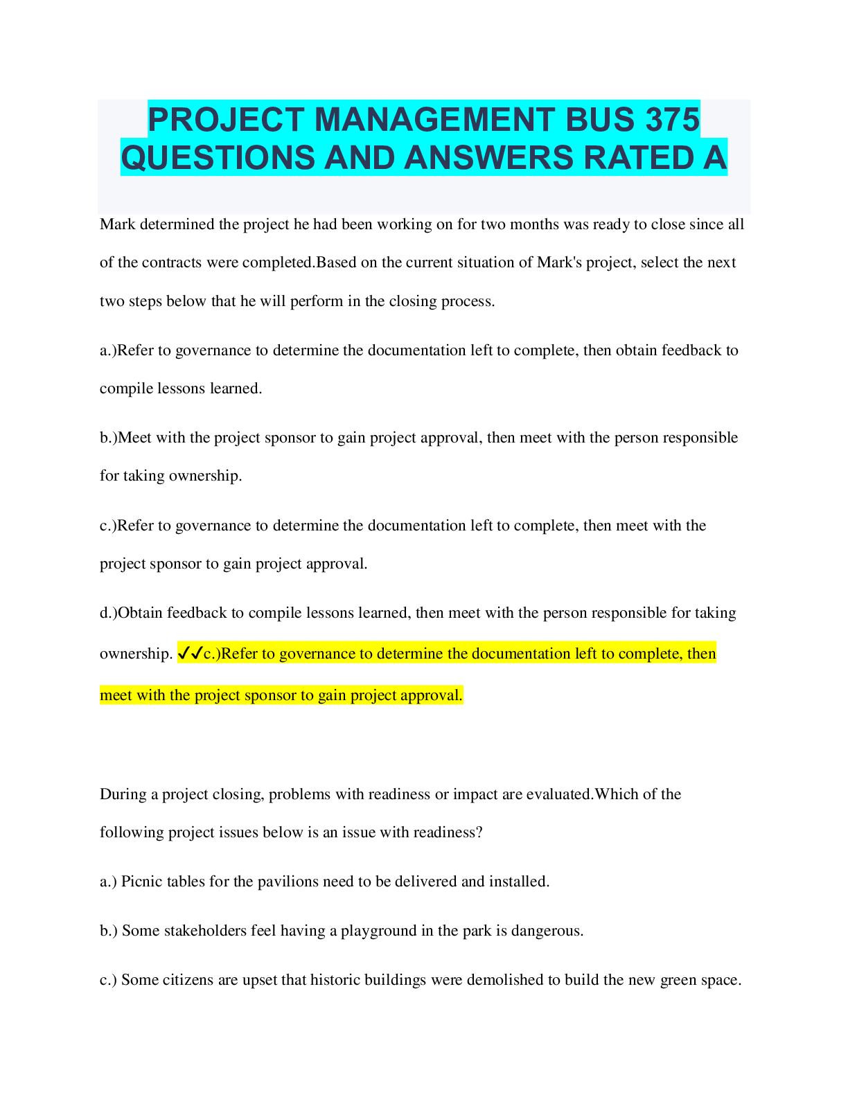 Project Management > TEST BANKS > Project Management: A Managerial Approach 10th Edition by Meredith, Jack, Samuel, Scott | Test Bank (All)