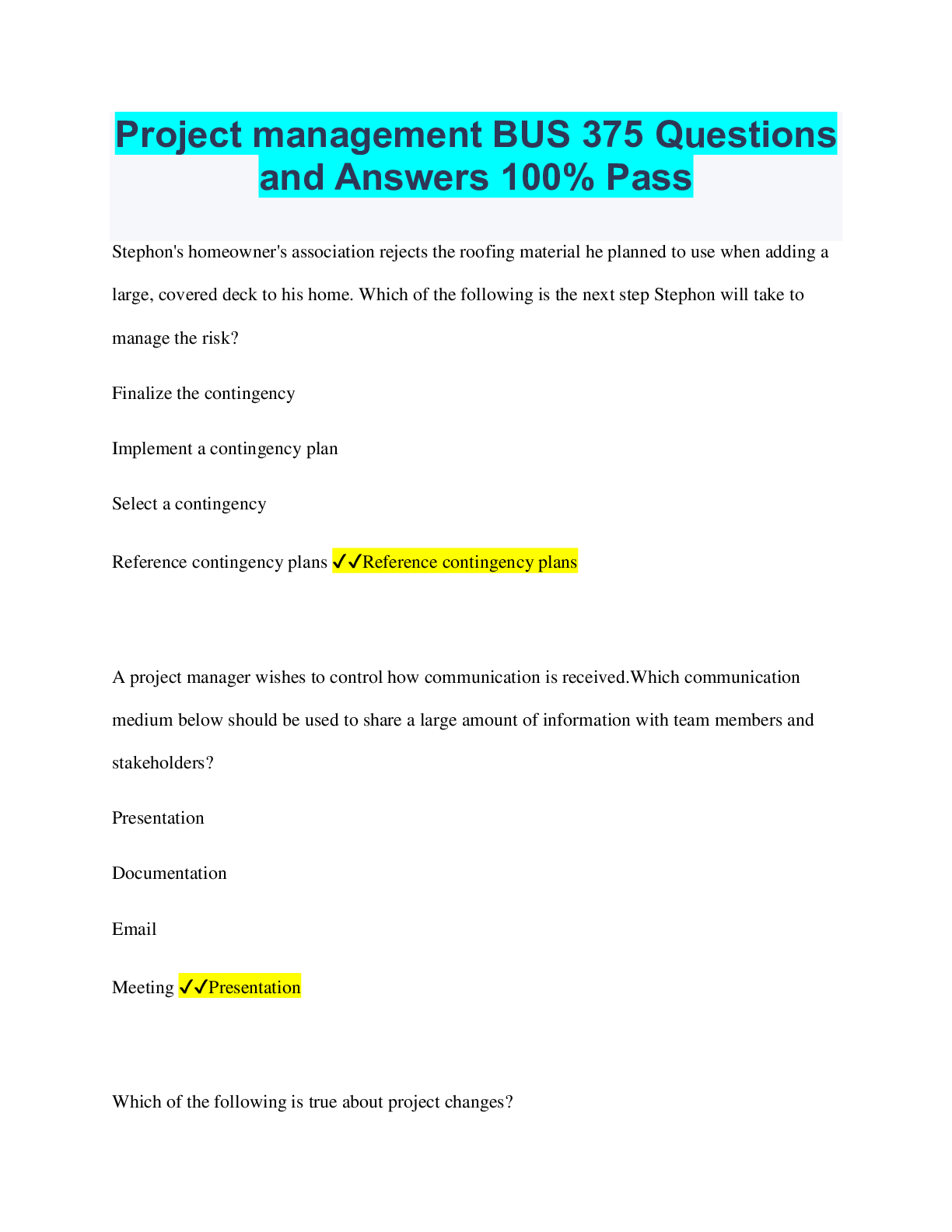 Project Management > QUESTIONS & ANSWERS > Project Stakeholder Management (PMBOK 13) / PMP & CAPM Exam Prep / 2025 Study Guide / Score 100% / Test Bank (All)