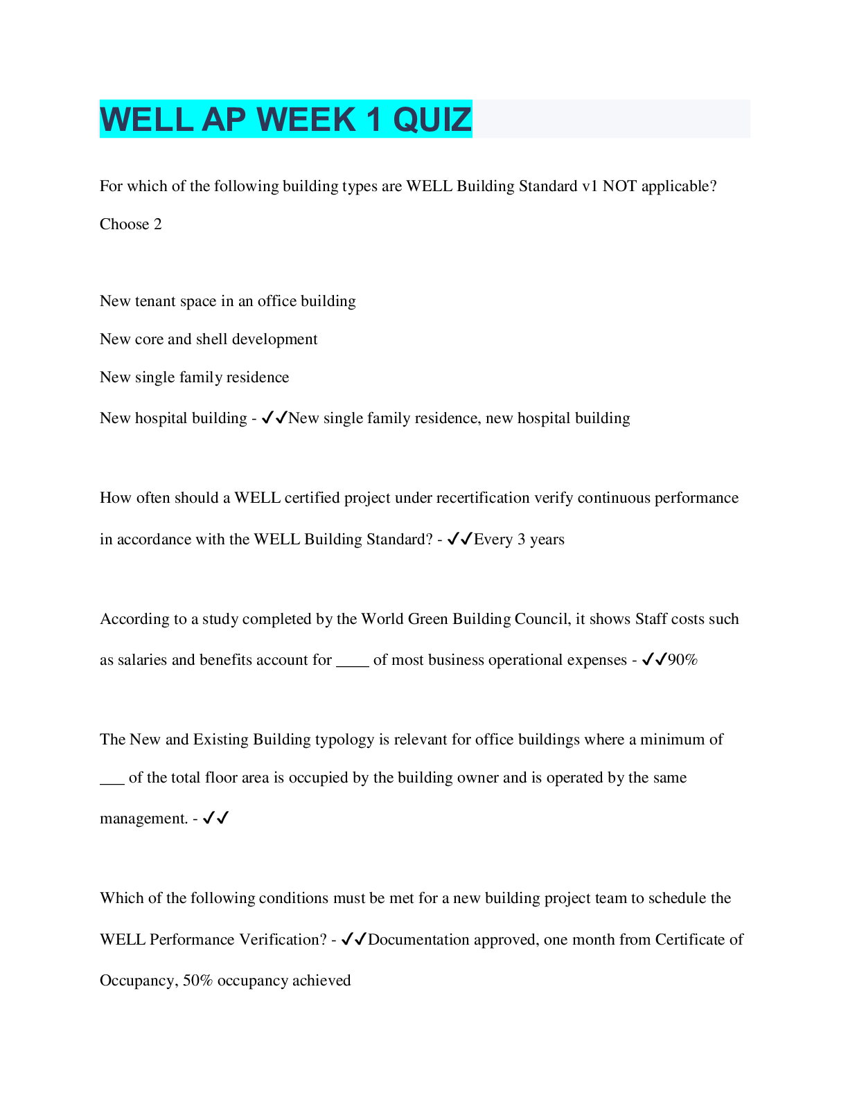 Project Management > EXAM > WELL AP WEEK 1 QUIZ | 37 Questions with 100% Correct Answers | Verified (All)