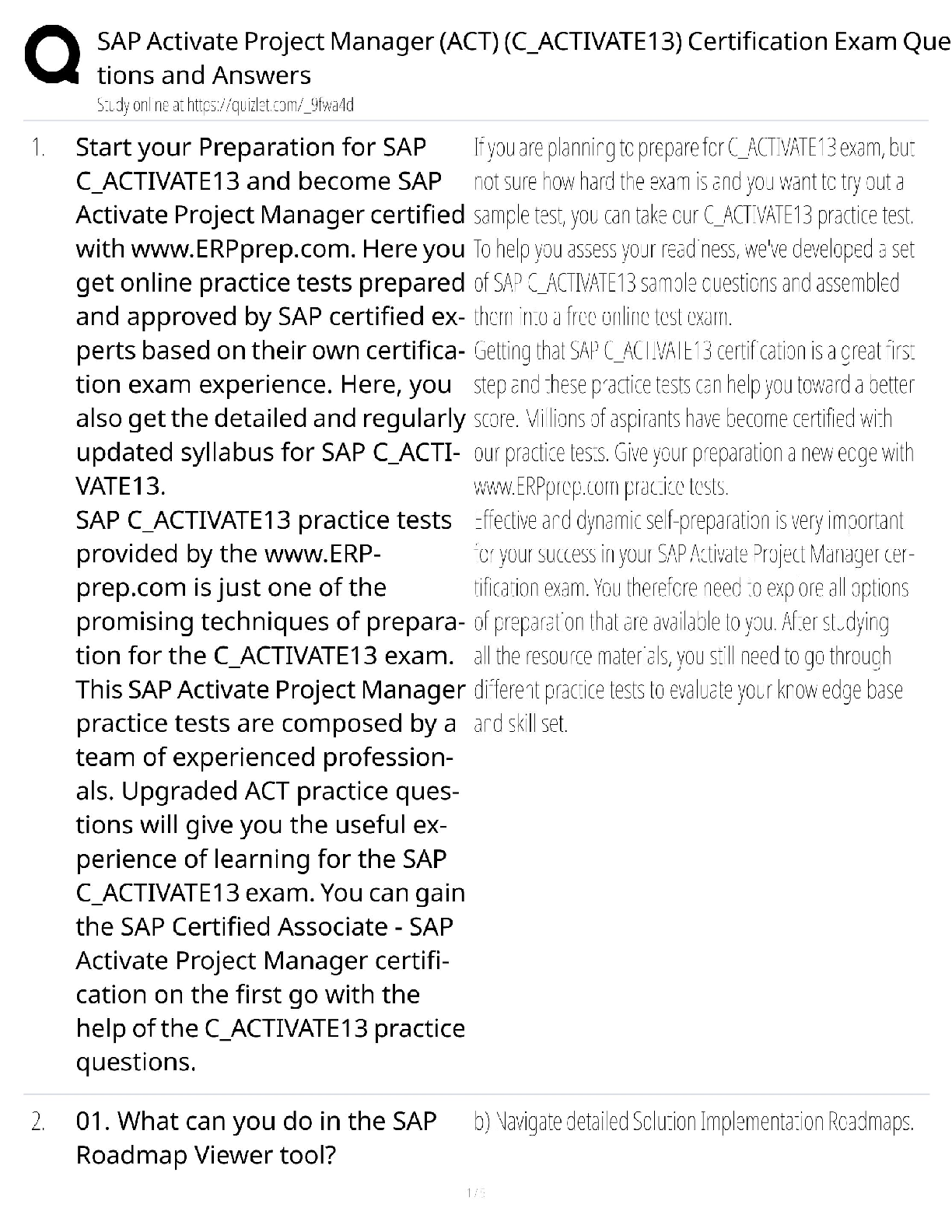 Project Management > QUESTIONS & ANSWERS > SAP Activate Project Manager Certification / C_ACTIVATE13 Exam Guide / 2025 Update / Score 100% (All)
