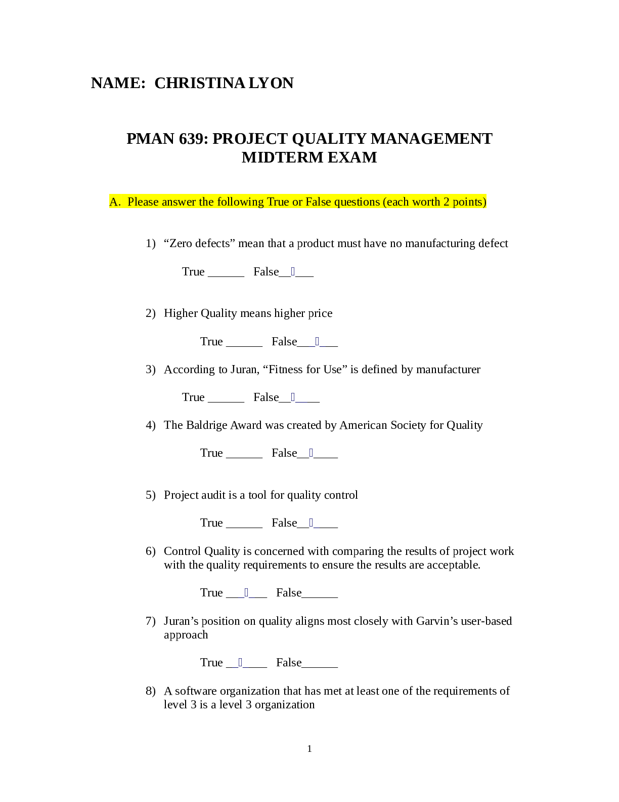 Project Management > AQA QUESTION and MARK SCHEMES > University of Maryland, University College ( PMAN 639) PROJECT QUALITY MANAGEMENT (All)