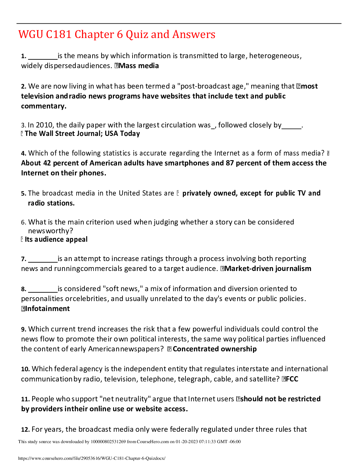 Project Management > EXAM > WGU C181 Chapter 6 Quiz and Answers,100% CORRECT (All)