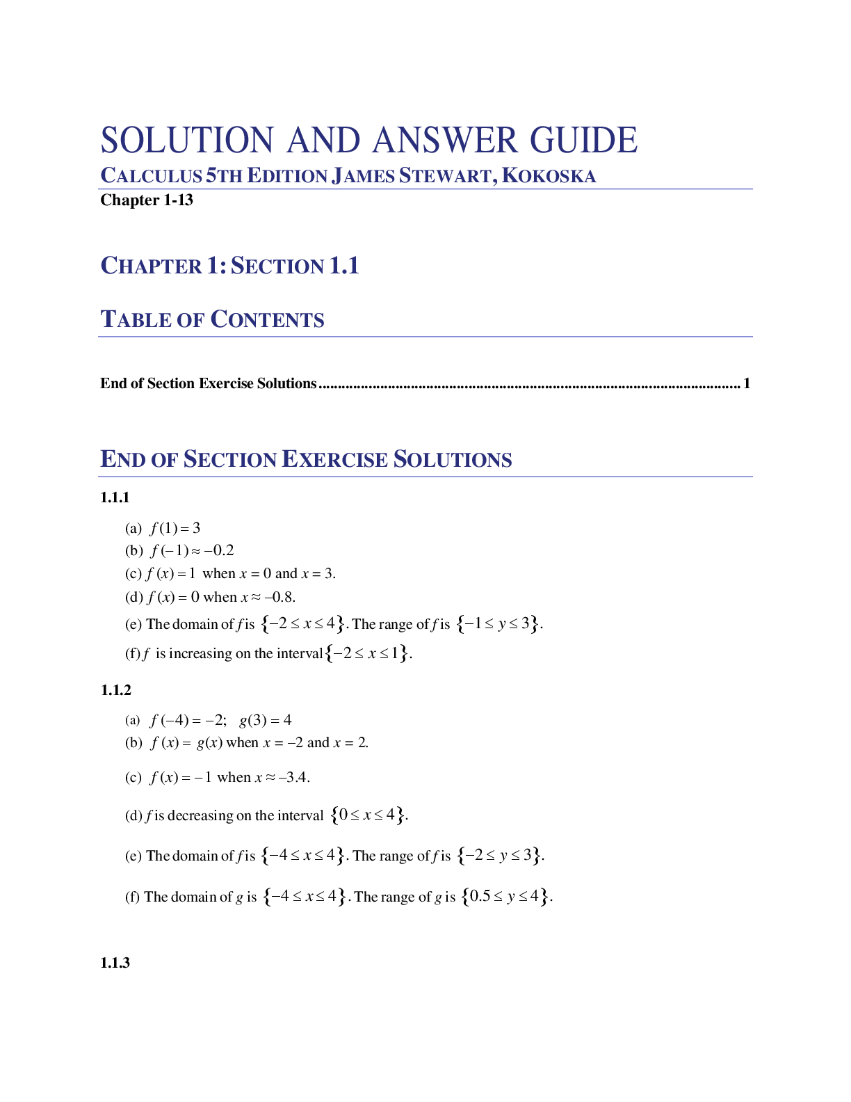 Calculus > Solutions Guide > SOLUTION AND ANSWER GUIDE CALCULUS 5TH EDITION JAMES STEWART, KOKOSKA Chapter 1-13 A+ (All)