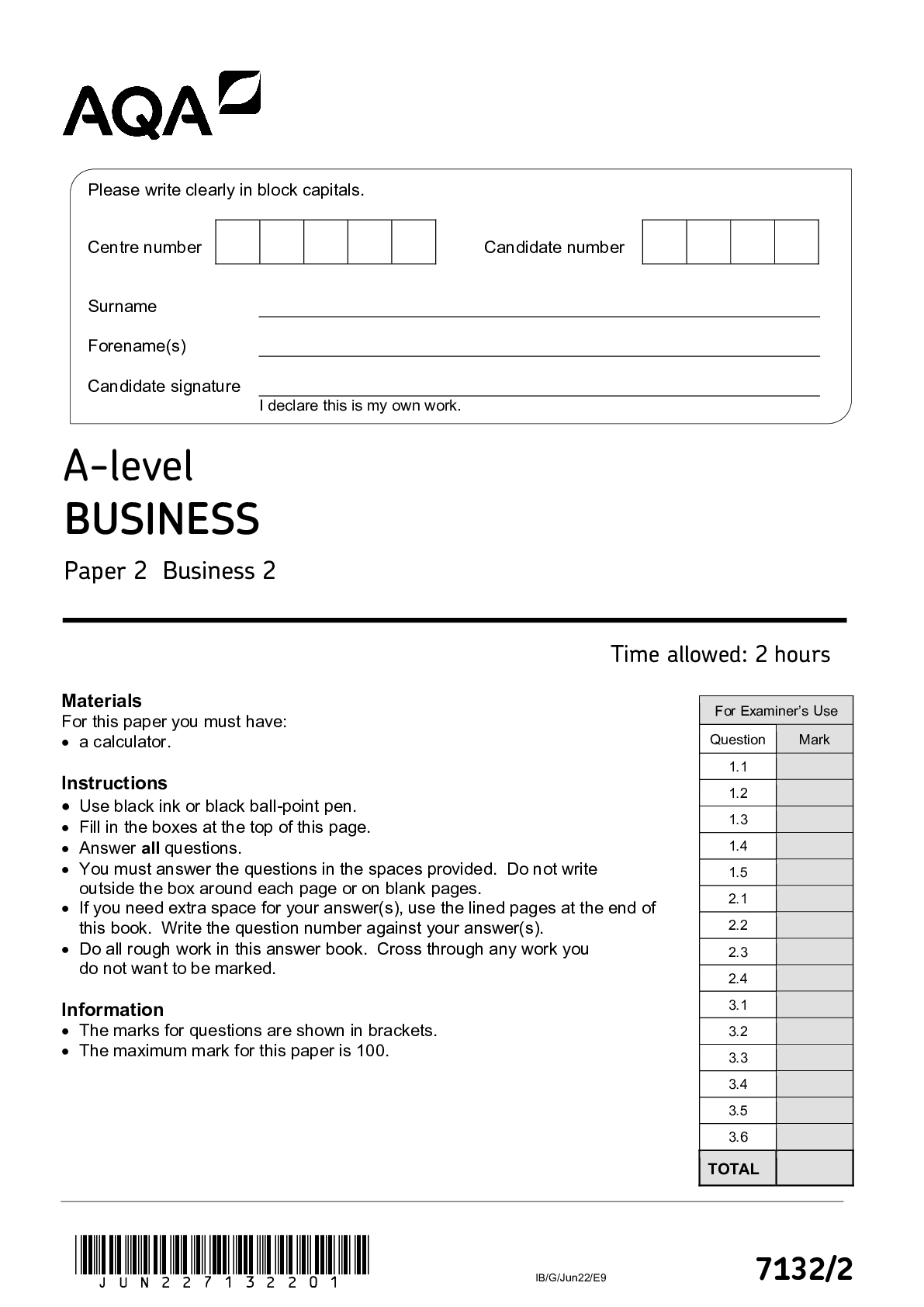 Business > AQA > AQA 2022 BUSINESS A LEVEL QUESTION PAPER 1 (All)