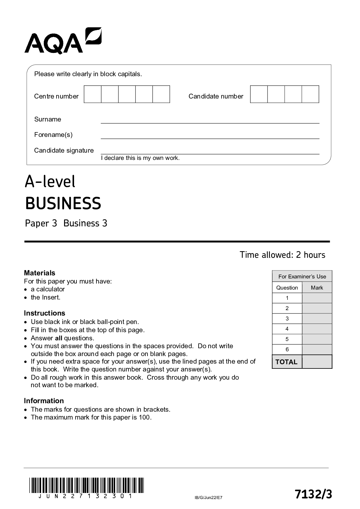 Business > AQA > AQA 2022 BUSINESS A LEVEL QUESTION PAPER 3 (All)