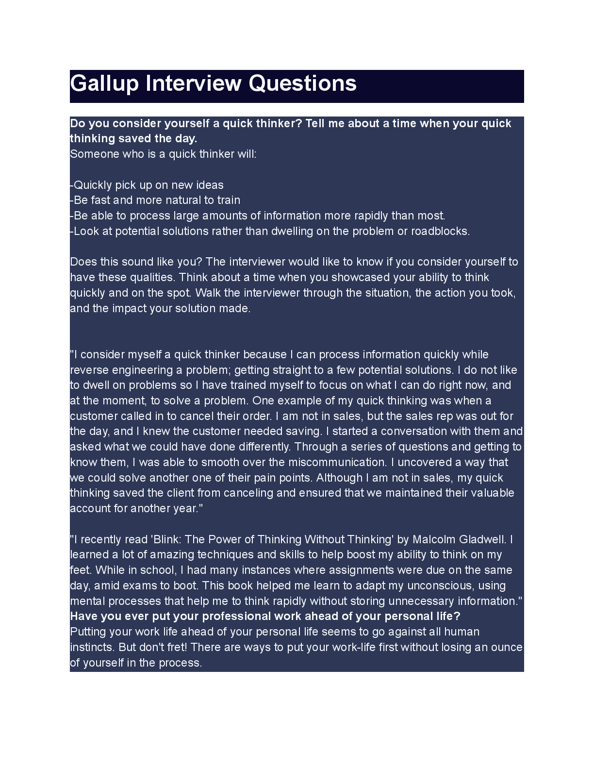 Business > INTERVIEW > Gallup Interview Questions and Answers 2025/2026 | Complete Practice Guide for Behavioral Interviews, Strengths Assessment & Job Preparation (All)