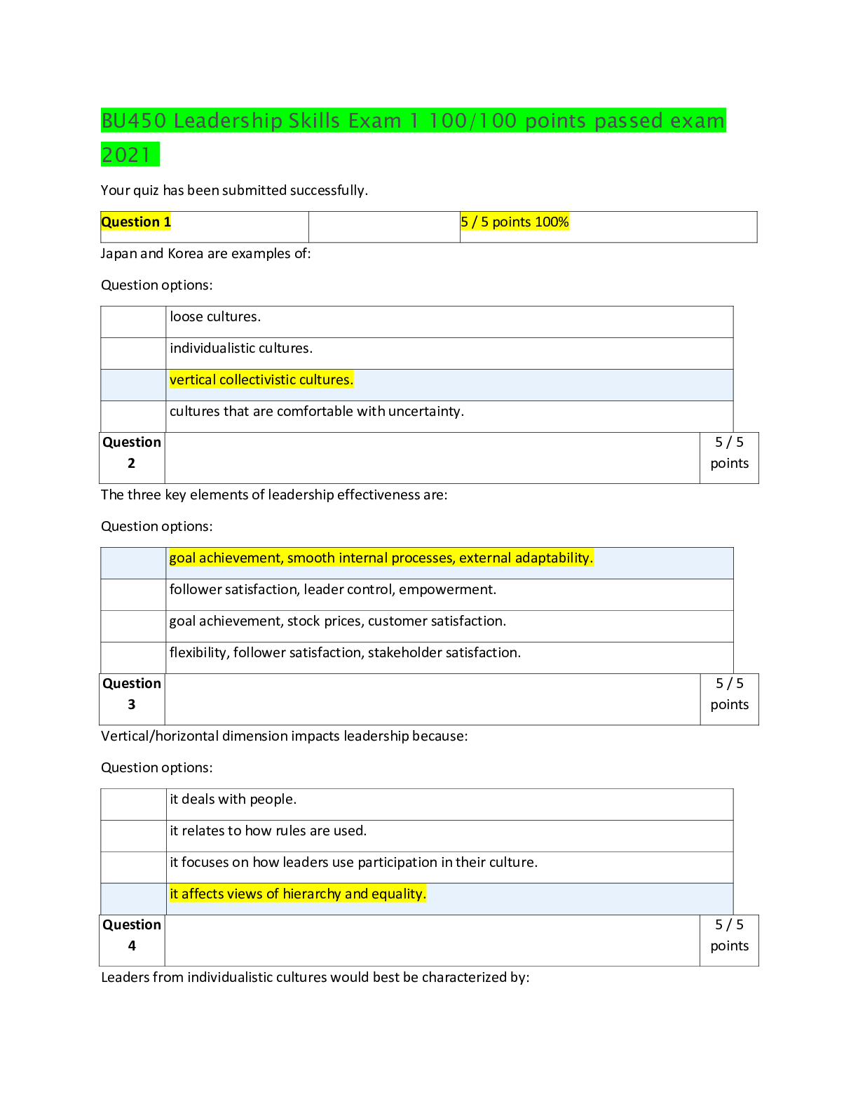 Business > EXAMs > BU450 Leadership Exam 2 COMPLETE QUESTIONS AND ANSWERS 2021 (All)