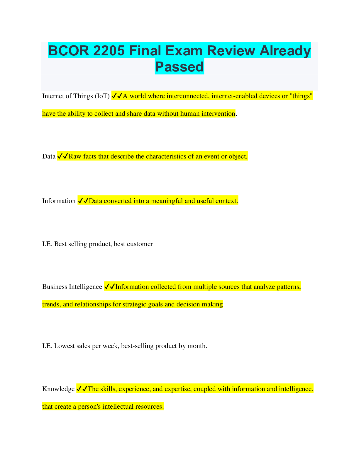 Business > Class Notes > BUSN 460 Entire Course Guide Week 1 – 8 (All)