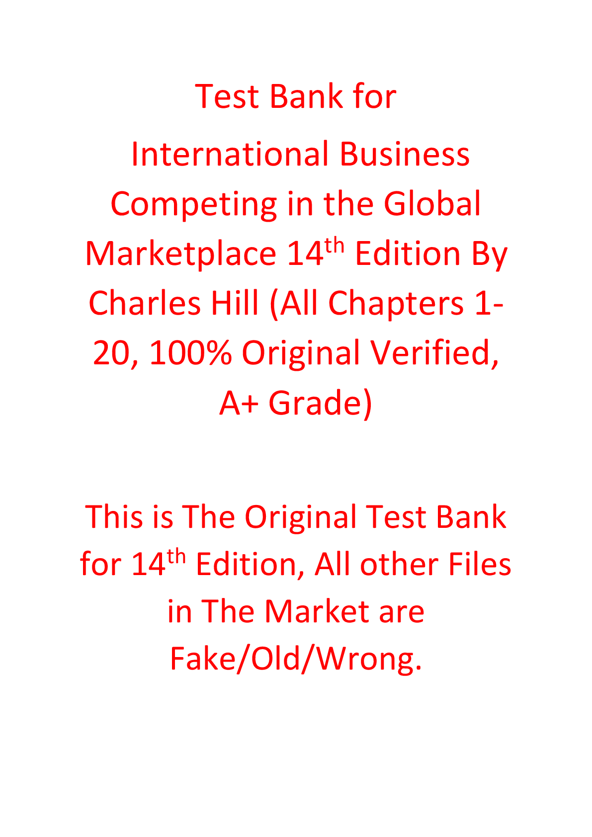Business > TEST BANKS > Test Bank For International Business Competing in the Global Marketplace 14th Edition By Charles Hill (All)