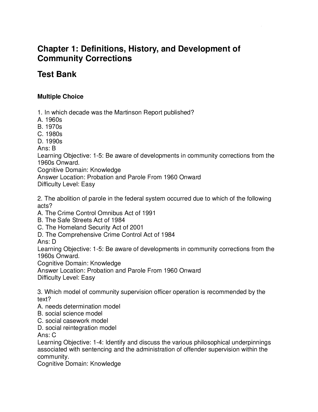 Cummunity Policing > TEST BANKS > Test Bank for Essentials of Community Corrections 1st Edition By Robert Hanser (All)