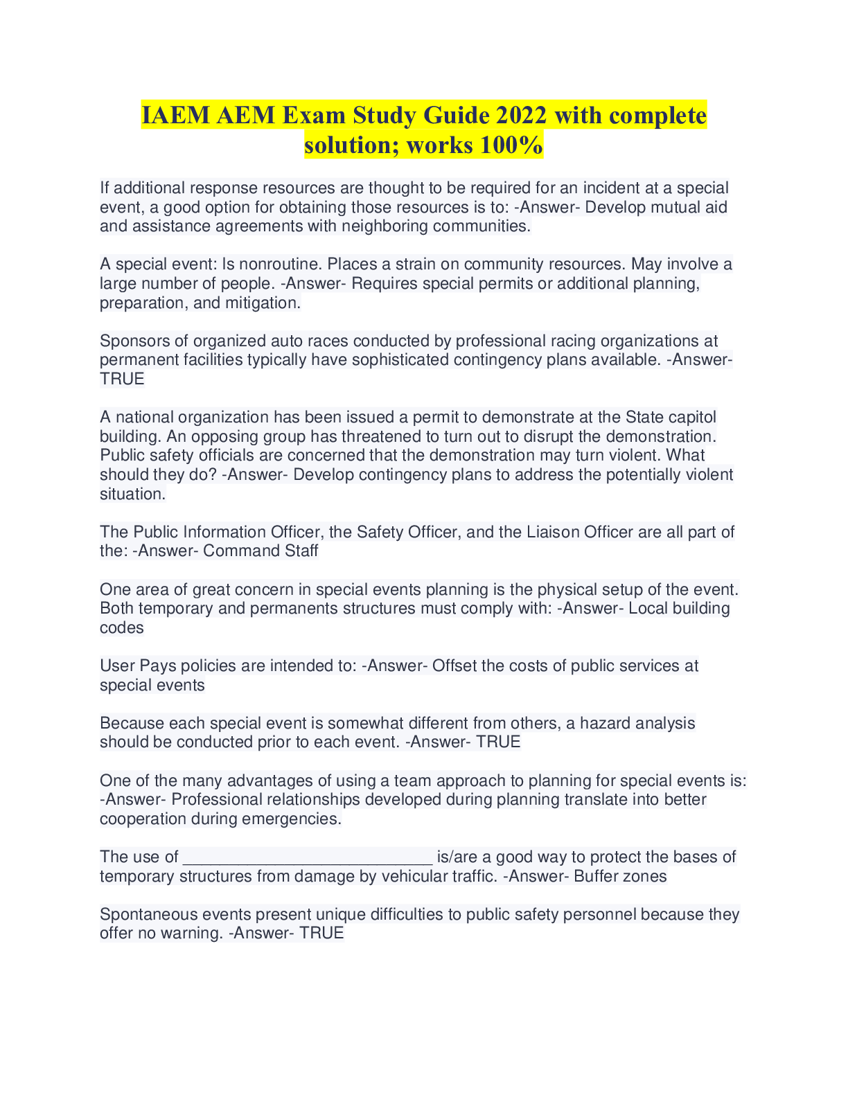 Cummunity Policing > QUESTIONS & ANSWERS > IAEM AEM Exam Study Guide 2022 with complete solution; works 100% (All)