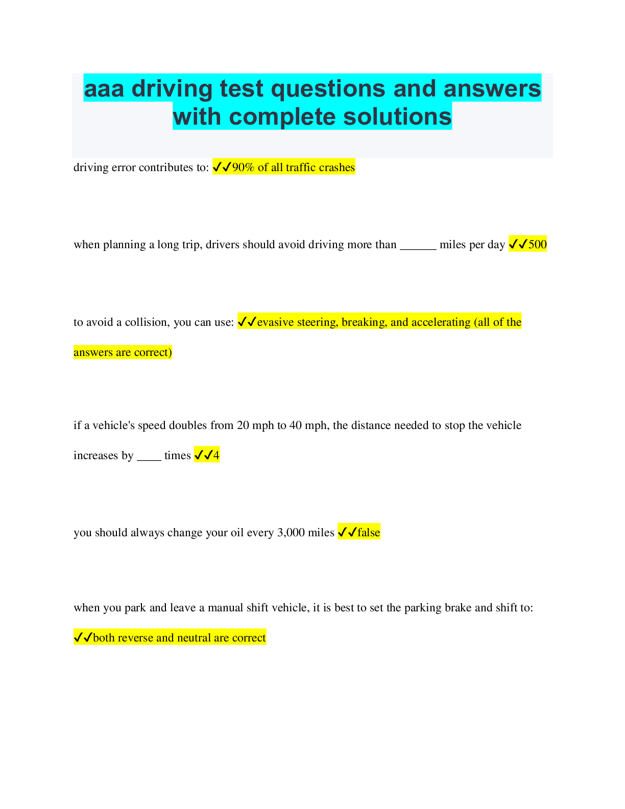 Cummunity Policing > EXAM > aaa driving test questions and answers with complete solutions (All)