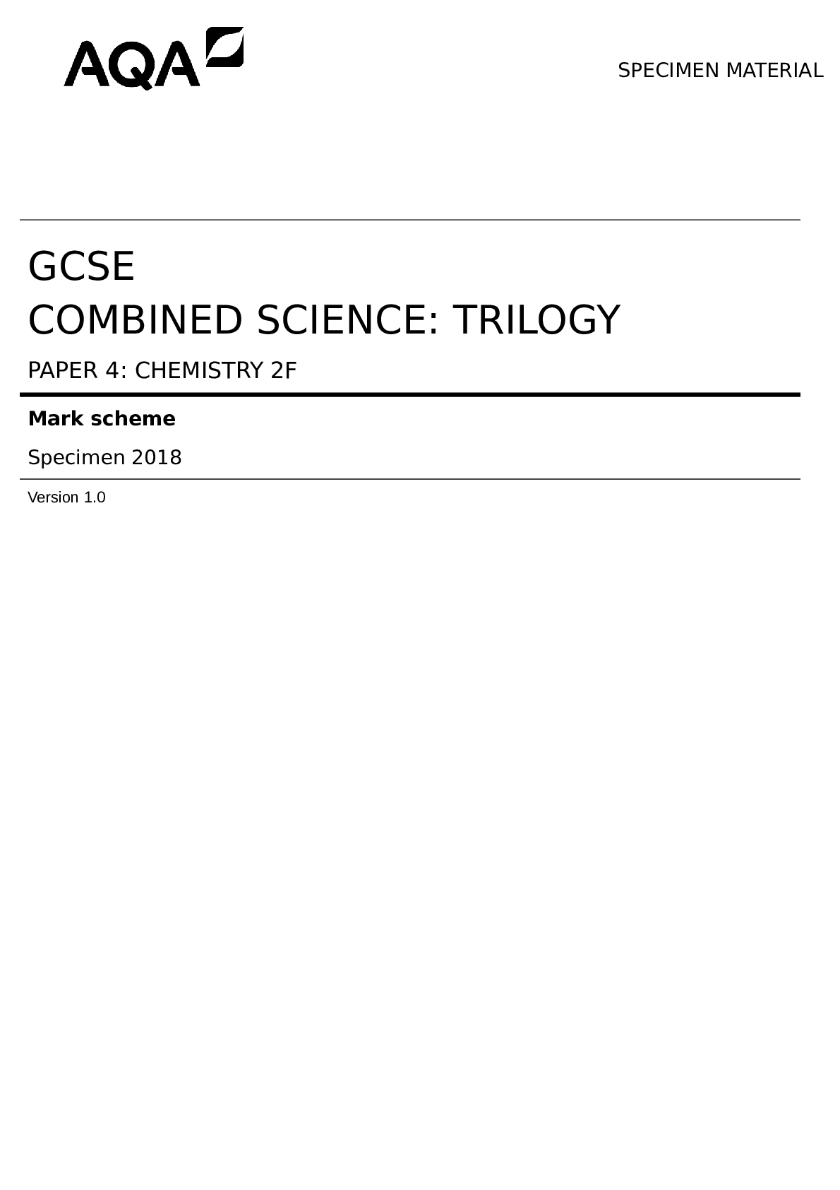 Chemistry > MARK SCHEMES > GCSE COMBINED SCIENCE: TRILOGY PAPER 4: CHEMISTRY 2F Mark scheme Specimen 2018 Version 1.0 (All)