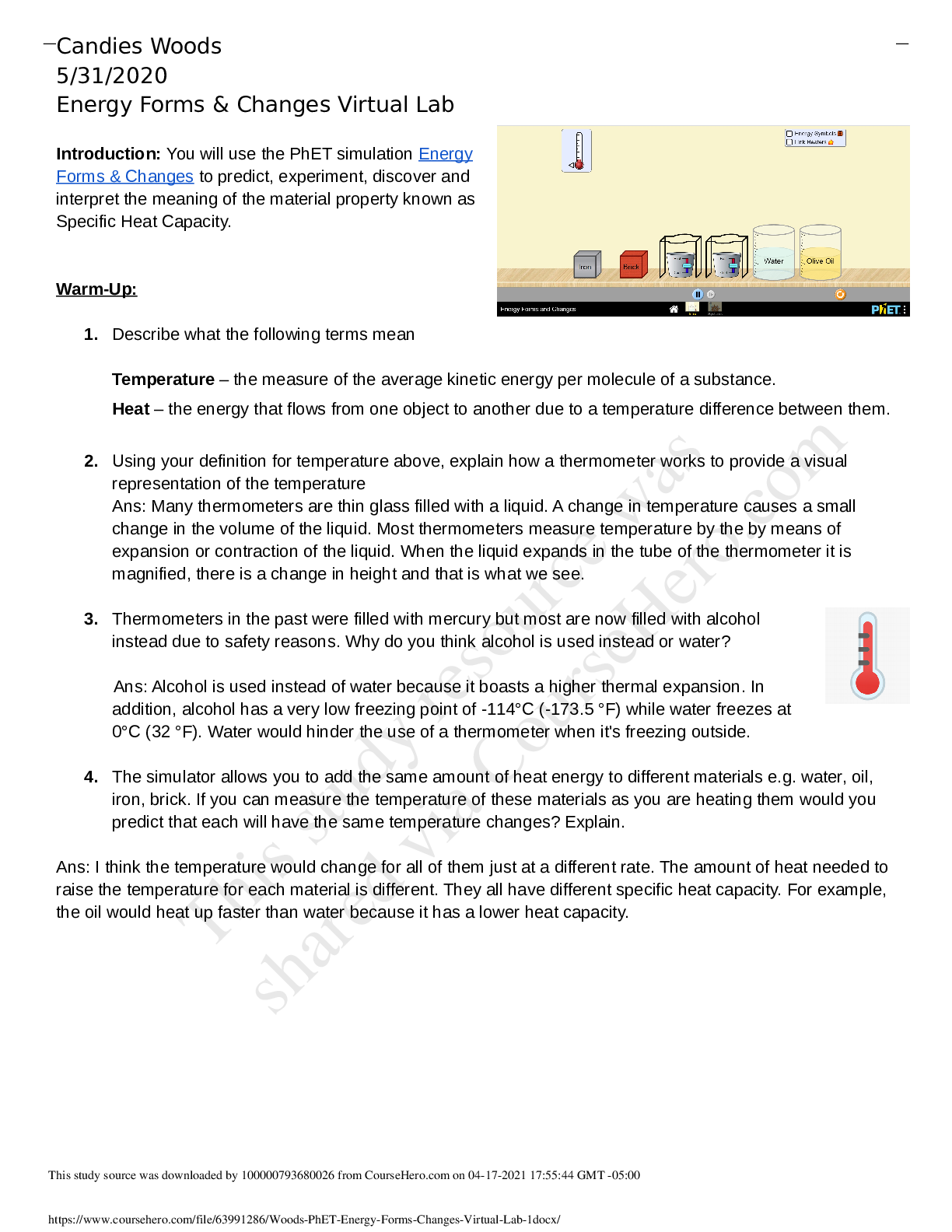 Chemistry > Lab Report > Woods PhET - Energy Forms & Changes Virtual Lab 2020 (All)