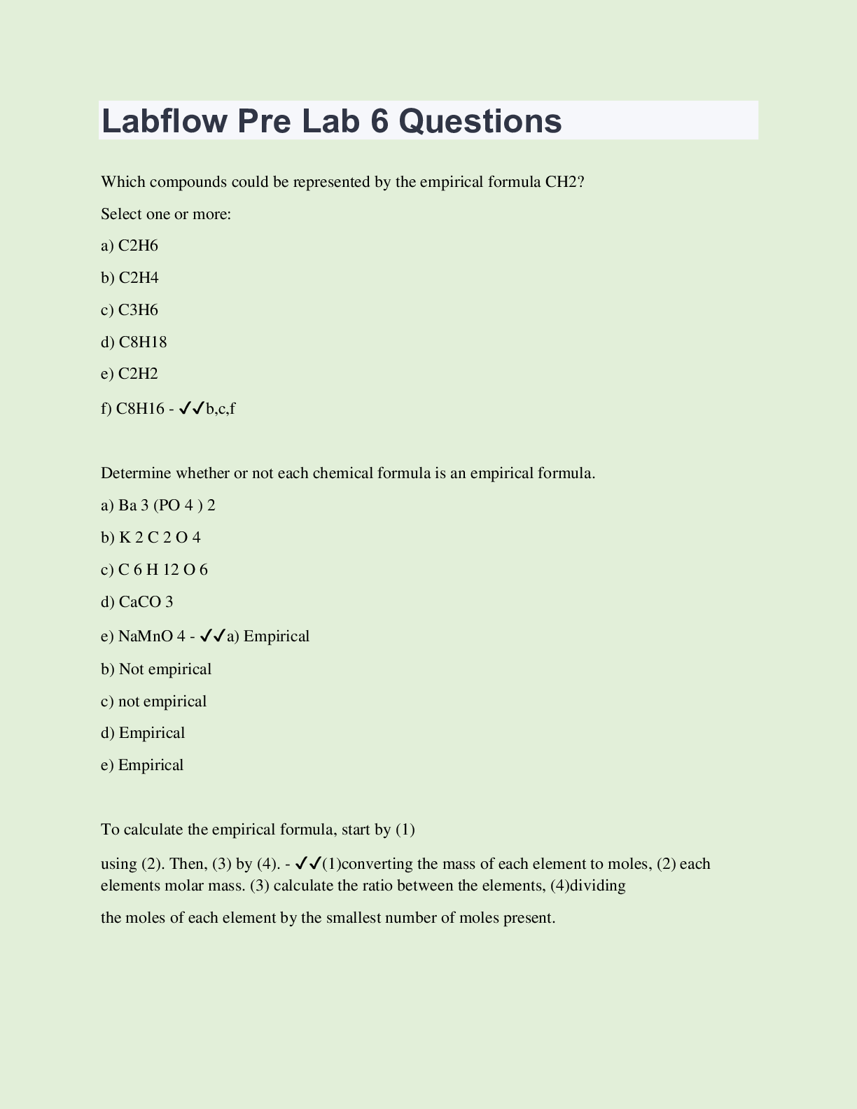 Chemistry > QUESTIONS & ANSWERS > Labflow Pre Lab 6 Questions | Questions with 100% Correct Answers | Updated & Verified (All)